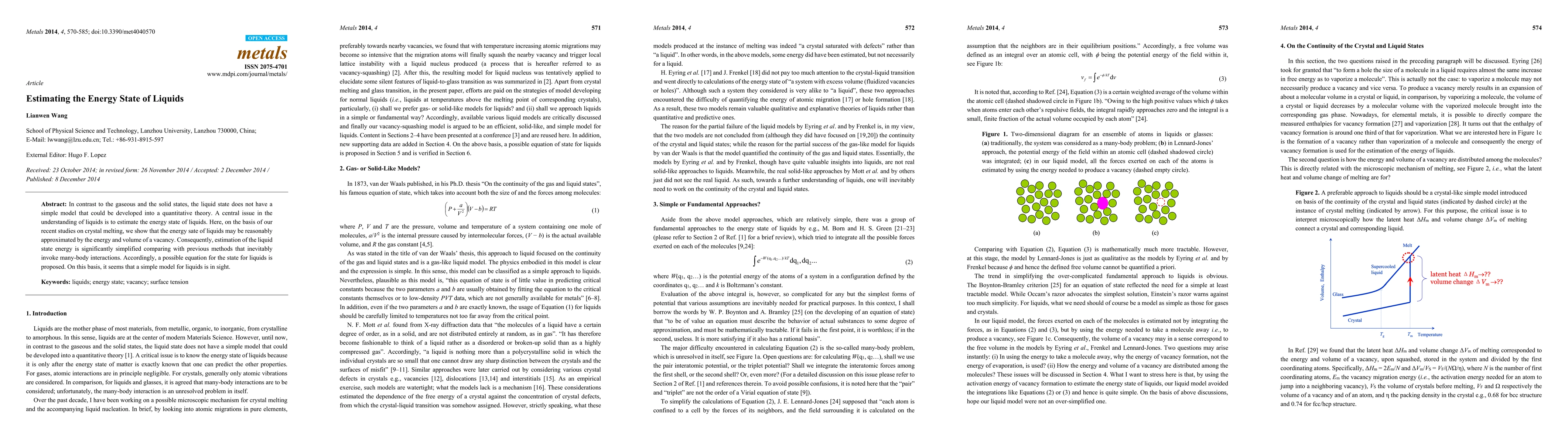 The paper proposes a method to estimate liquid state energy using vacancy energy and volume, simplifying previous complex methods involving many-body interactions. This approach suggests the possibility of a simple liquid state model.
