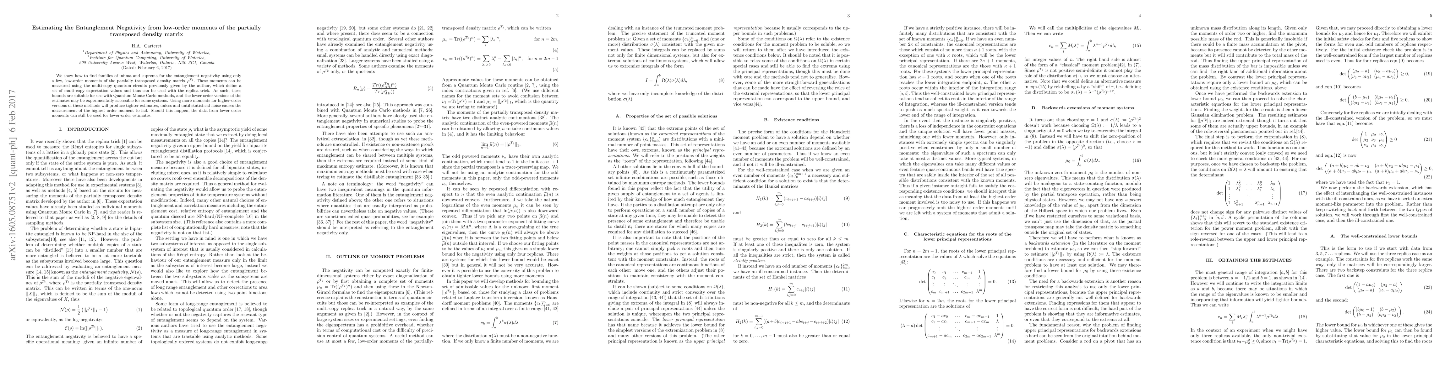 This paper presents a method to estimate entanglement negativity using low-order moments of the partially transposed density matrix, which are experimentally accessible via multi-copy quantum circuits. Higher-order moments provide tighter estimates, but lower-order moments remain usable if statistical noise affects higher-order measurements.