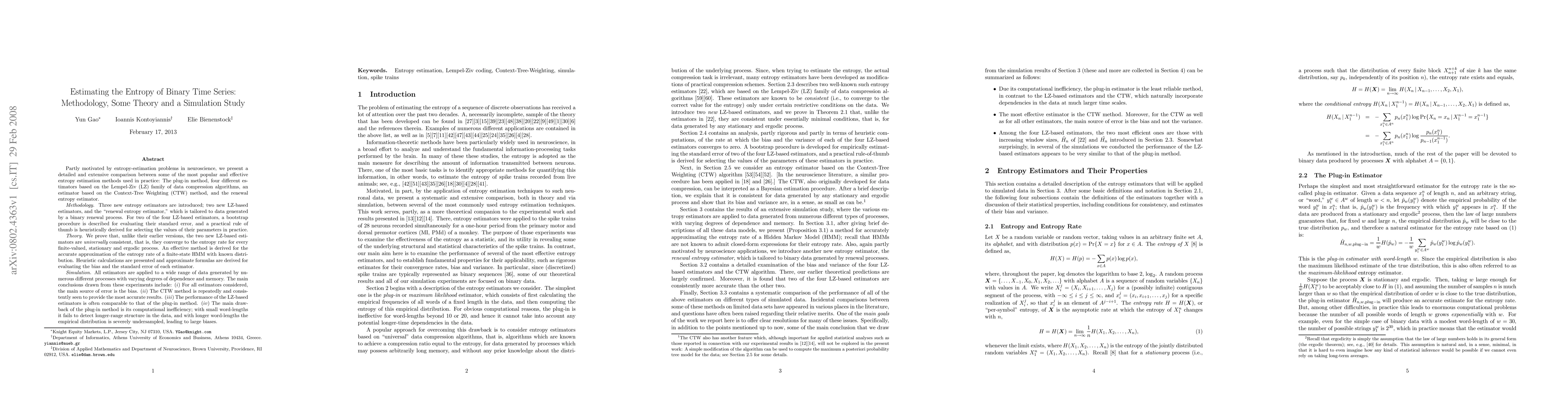 Partly motivated by entropy-estimation problems in neuroscience, we present a detailed and extensive comparison between some of the most popular and effective entropy estimation methods used in practice: The plug-in method, four different estimators based on the Lempel-Ziv (LZ) family of data compression algorithms, an estimator based on the Context-Tree Weighting (CTW) method, and the renewal entropy estimator. **Methodology. Three new entropy estimators are introduced. For two of the four LZ-based estimators, a bootstrap procedure is described for evaluating their standard error, and a practical rule of thumb is heuristically derived for selecting the values of their parameters. ** Theory. We prove that, unlike their earlier versions, the two new LZ-based estimators are consistent for every finite-valued, stationary and ergodic process. An effective method is derived for the accurate approximation of the entropy rate of a finite-state HMM with known distribution. Heuristic calculations are presented and approximate formulas are derived for evaluating the bias and the standard error of each estimator. ** Simulation. All estimators are applied to a wide range of data generated by numerous different processes with varying degrees of dependence and memory. Some conclusions drawn from these experiments include: (i) For all estimators considered, the main source of error is the bias. (ii) The CTW method is repeatedly and consistently seen to provide the most accurate results. (iii) The performance of the LZ-based estimators is often comparable to that of the plug-in method. (iv) The main drawback of the plug-in method is its computational inefficiency.