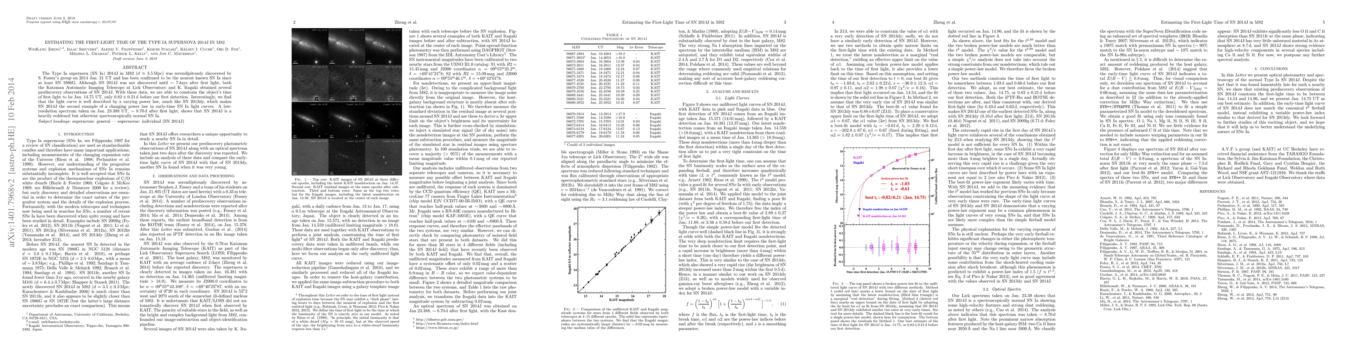 This paper estimates the first-light time of the Type Ia supernova 2014J in M82 to be Jan. 14.75 UT, based on prediscovery observations. The light curve of SN 2014J follows a varying power law, similar to SN 2013dy, making it the second known instance of this pattern in early-time Type Ia supernova light curves.