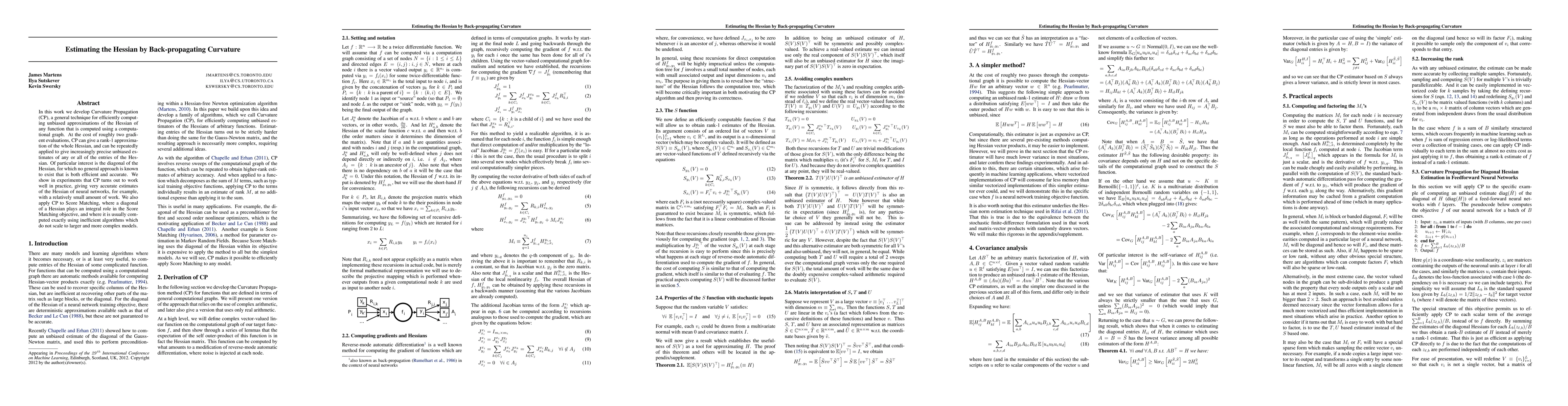 In this work we develop Curvature Propagation (CP), a general technique for efficiently computing unbiased approximations of the Hessian of any function that is computed using a computational graph. At the cost of roughly two gradient evaluations, CP can give a rank-1 approximation of the whole Hessian, and can be repeatedly applied to give increasingly precise unbiased estimates of any or all of the entries of the Hessian. Of particular interest is the diagonal of the Hessian, for which no general approach is known to exist that is both efficient and accurate. We show in experiments that CP turns out to work well in practice, giving very accurate estimates of the Hessian of neural networks, for example, with a relatively small amount of work. We also apply CP to Score Matching, where a diagonal of a Hessian plays an integral role in the Score Matching objective, and where it is usually computed exactly using inefficient algorithms which do not scale to larger and more complex models.