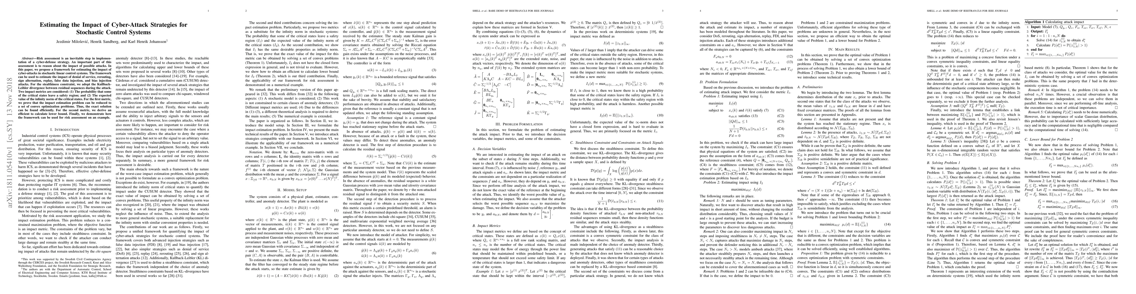 Risk assessment is an inevitable step in implementation of a cyber-defense strategy. An important part of this assessment is to reason about the impact of possible attacks. In this paper, we propose a framework for estimating the impact of cyber-attacks in stochastic linear control systems. The framework can be used to estimate the impact of denial of service, rerouting, sign alternation, replay, false data injection, and bias injection attacks. For the stealthiness constraint, we adopt the Kullback-Leibler divergence between residual sequences during the attack. Two impact metrics are considered: (1) The probability that some of the critical states leave a safety region; and (2) The expected value of the infinity norm of the critical states. For the first metric, we prove that the impact estimation problem can be reduced to a set of convex optimization problems. Thus, the exact solution can be found efficiently. For the second metric, we derive an efficient to calculate lower bound. Finally, we demonstrate how the framework can be used for risk assessment on an example.