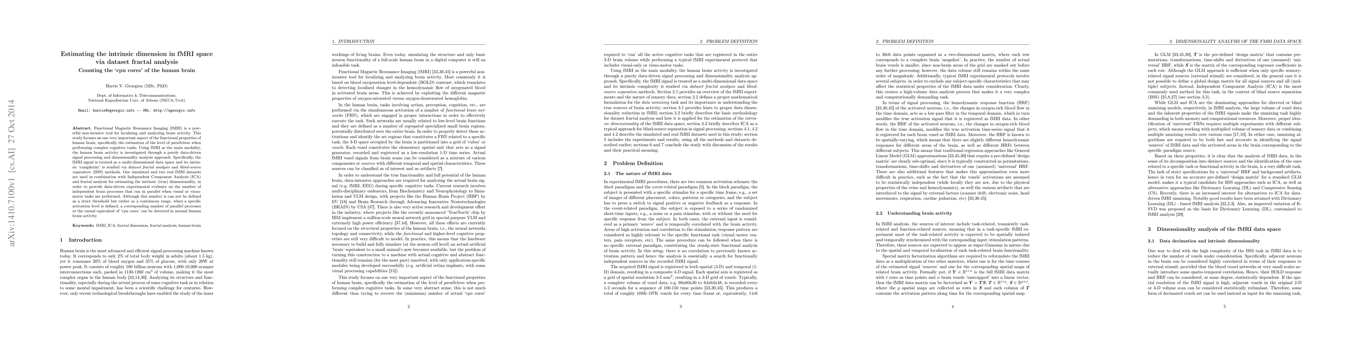 Functional Magnetic Resonance Imaging (fMRI) is a powerful non-invasive tool for localizing and analyzing brain activity. This study focuses on one very important aspect of the functional properties of human brain, specifically the estimation of the level of parallelism when performing complex cognitive tasks. Using fMRI as the main modality, the human brain activity is investigated through a purely data-driven signal processing and dimensionality analysis approach. Specifically, the fMRI signal is treated as a multi-dimensional data space and its intrinsic `complexity' is studied via dataset fractal analysis and blind-source separation (BSS) methods. One simulated and two real fMRI datasets are used in combination with Independent Component Analysis (ICA) and fractal analysis for estimating the intrinsic (true) dimensionality, in order to provide data-driven experimental evidence on the number of independent brain processes that run in parallel when visual or visuo-motor tasks are performed. Although this number is can not be defined as a strict threshold but rather as a continuous range, when a specific activation level is defined, a corresponding number of parallel processes or the casual equivalent of `cpu cores' can be detected in normal human brain activity.