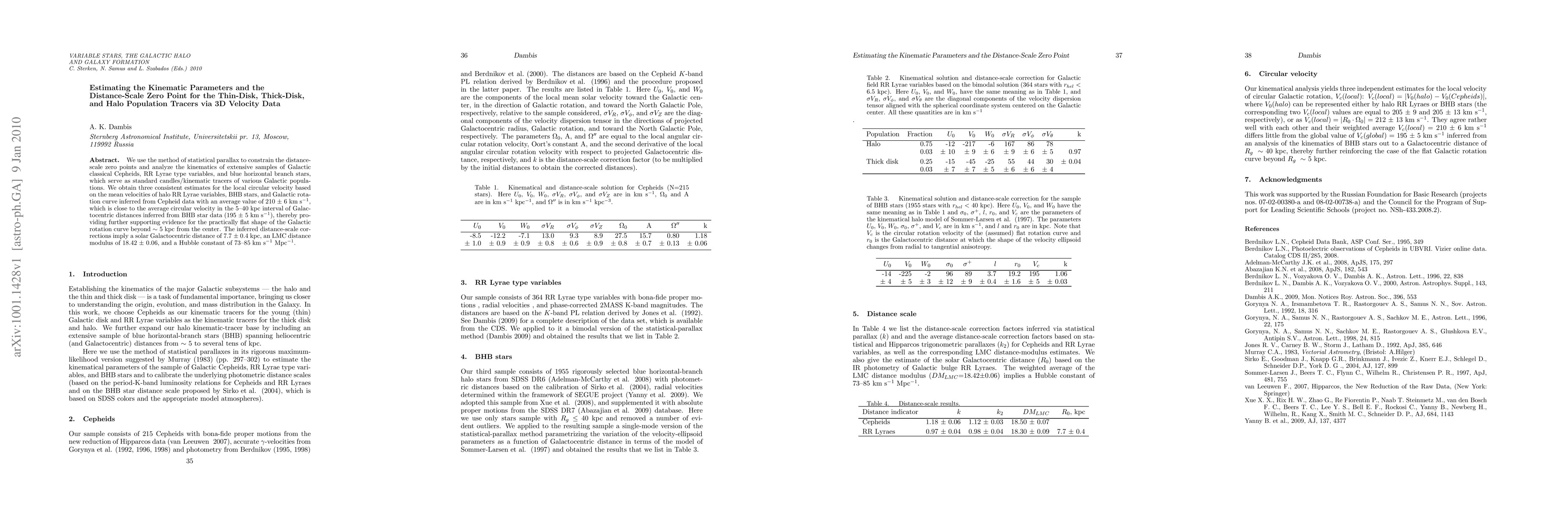 This paper uses statistical parallax to estimate the distance-scale zero points and kinematic parameters for various Galactic tracers, finding a local circular velocity of 210±6 km/s, supporting a flat Galactic rotation curve beyond 5 kpc. The study also determines a solar Galactocentric distance of 7.7±0.4 kpc and a Hubble constant range of 73-85 km/s/Mpc.