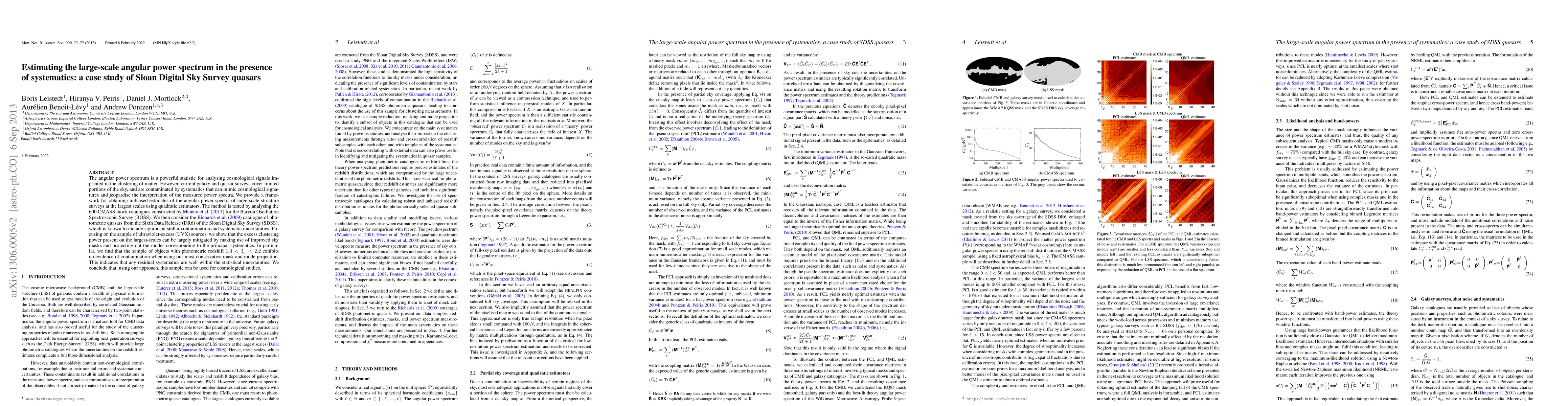 This paper develops a method for estimating the large-scale angular power spectrum in surveys, addressing systematics that can distort cosmological signals. Applying this method to SDSS quasar data, the authors show that careful sky masking and mode projection can mitigate contamination, allowing the use of certain quasar samples for cosmological studies.