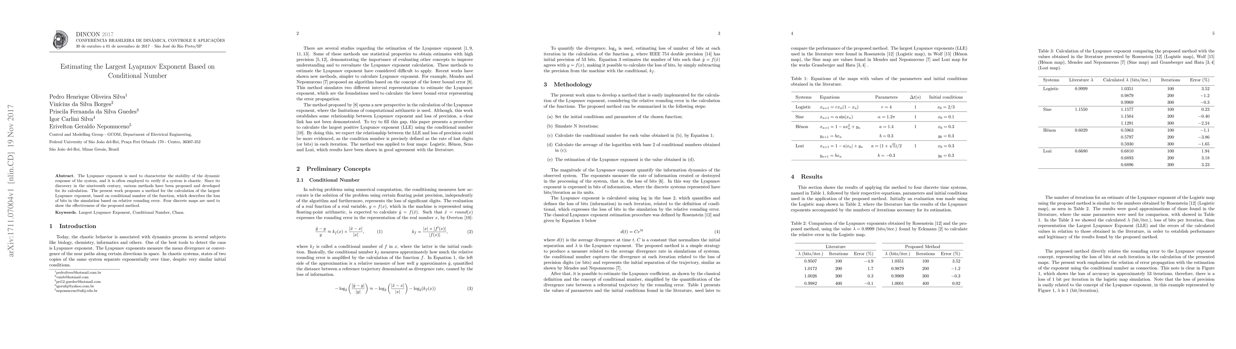 The Lyapunov exponent is used to characterize the stability of the dynamic response of the system, and it is often employed to verify if a system is chaotic. Since its discovery in the nineteenth century, various methods have been proposed and developed for its calculation. The present work proposes a method for the calculation of the largest Lyapunov exponent, based on conditional number of the function, which describes the loss of bits in the simulation based on relative rounding error. Four discrete maps are used to show the effectiveness of the proposed method.