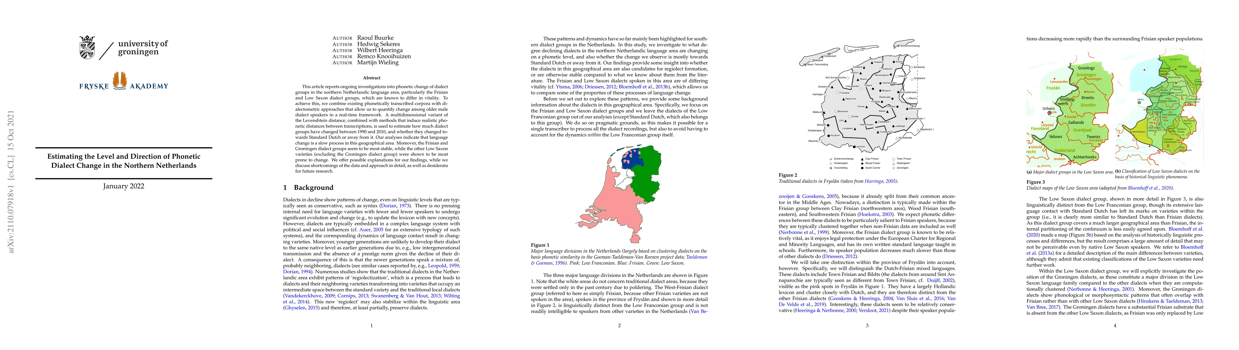This study estimates phonetic dialect change in the northern Netherlands from 1990 to 2010, finding that language change is slow and some dialects are more prone to change than others. The Frisian and Groningen dialect groups remain stable, while other Low Saxon varieties show significant changes.