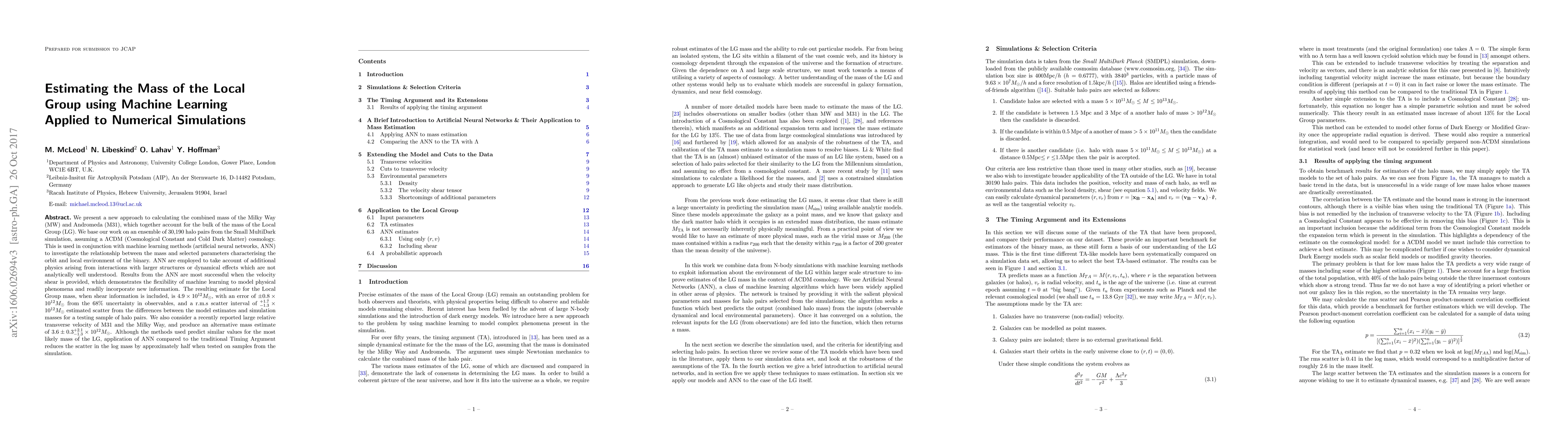Researchers used machine learning to estimate the mass of the Local Group, including the Milky Way and Andromeda galaxies, with an estimated mass of $4.9 imes 10^{12} M_igodot$, reducing error by over half compared to other methods.