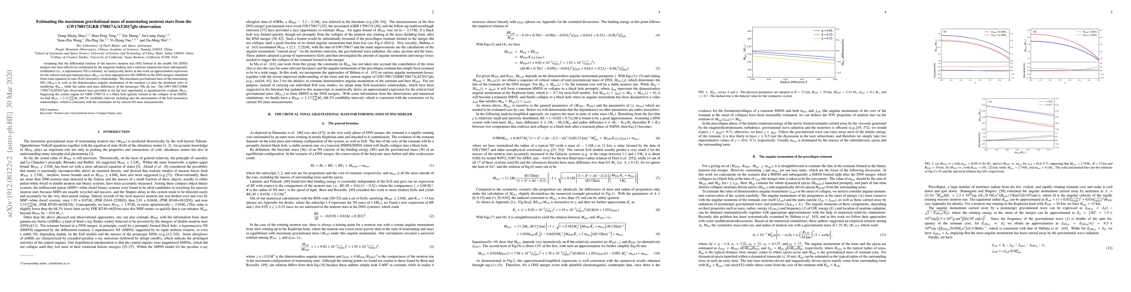 Assuming that the differential rotation of the massive neutron star (NS) formed in the double NS (DNS) mergers has been effectively terminated by the magnetic braking and a uniform rotation has been subsequently established (i.e., a supramassive NS is formed), we analytically derive in this work an approximated expression for the critical total gravitational mass ($M_{\rm tot,c}$) to form supramassive NS (SMNS) in the DNS mergers, benefited from some equation of state (EoS) insensitive relationships. The maximum gravitational mass of the nonrotating NSs ($M_{\rm TOV}$) as well as the dimensionless angular momentum of the remnant ($j$) play the dominant roles in modifying $M_{\rm tot,c}$, while the radius and mass differences of the premerger NSs do not. The GW170817/GRB 170817A/AT2017gfo observations have provided so far the best opportunity to quantitatively evaluate $M_{\rm TOV}$. Supposing the central engine for GRB 170817A is a black hole quickly formed in the collapse of an SMNS, we find $M_{\rm TOV}=2.13^{+0.09}_{-0.08}M_\odot$ (68.3% credibility interval, including also the uncertainties of the EoS insensitive relationships), which is consistent with the constraints set by current NS mass measurements.