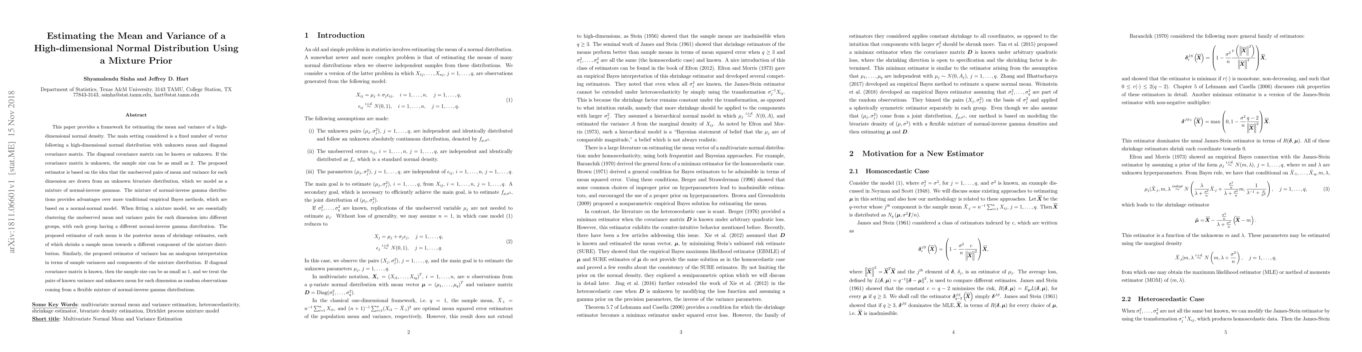 This paper proposes a mixture prior framework to estimate the mean and variance of high-dimensional normal distributions, using a mixture of normal-inverse gamma distributions to model unobserved pairs of mean and variance. The method offers advantages over traditional empirical Bayes methods and can work with as few as 2 samples when the covariance matrix is unknown.