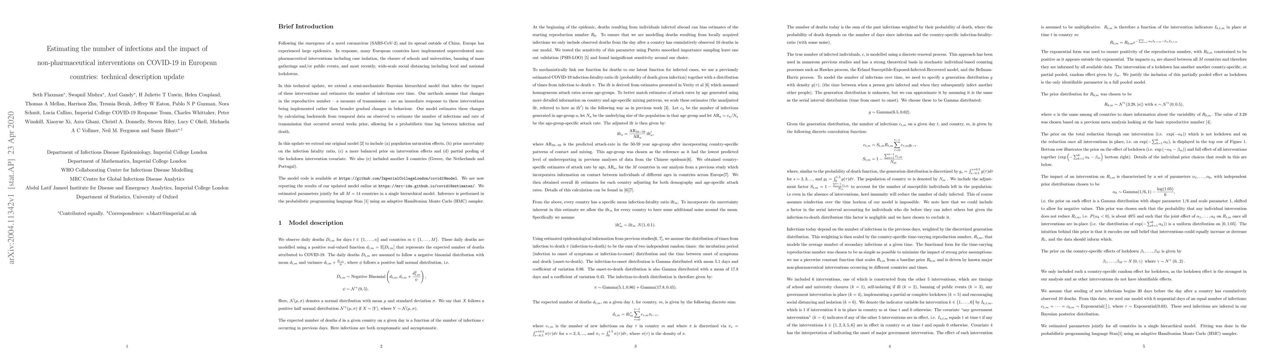 This paper updates a semi-mechanistic Bayesian hierarchical model to estimate the number of COVID-19 infections and assess the impact of non-pharmaceutical interventions across European countries. The model now includes population saturation effects, prior uncertainty on the infection fatality ratio, and partial pooling of lockdown intervention data.