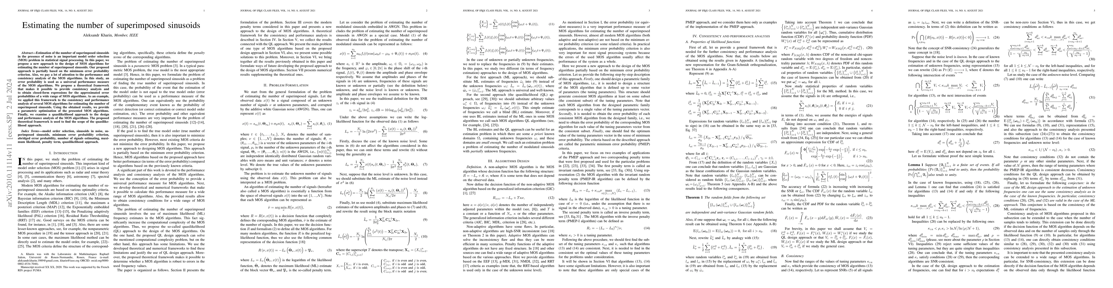 This paper introduces a new model order selection (MOS) algorithm for estimating the number of superimposed sinusoids in noisy signals. It leverages a minimum error probability criterion, provides consistency analysis, and proposes a theoretical framework for evaluating performance via error probability. The study also includes parametric optimization and examines a quasilikelihood approach for MOS algorithm design.