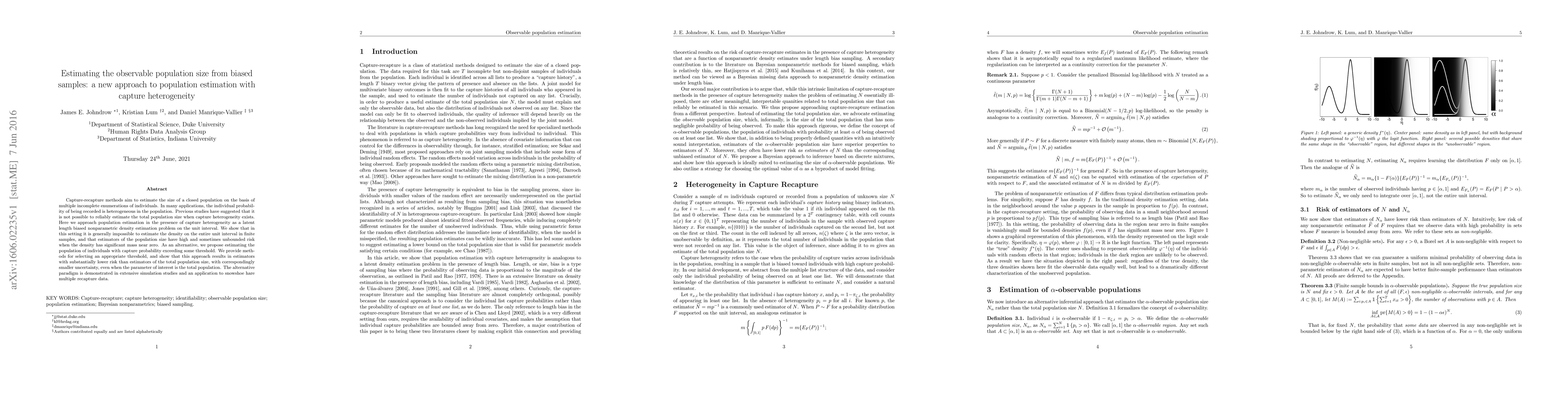 This paper proposes a new method for estimating the observable population size from biased samples, addressing capture heterogeneity. Instead of estimating the total population size, it suggests estimating the population with capture probabilities above a certain threshold, which results in more reliable and less uncertain estimates.