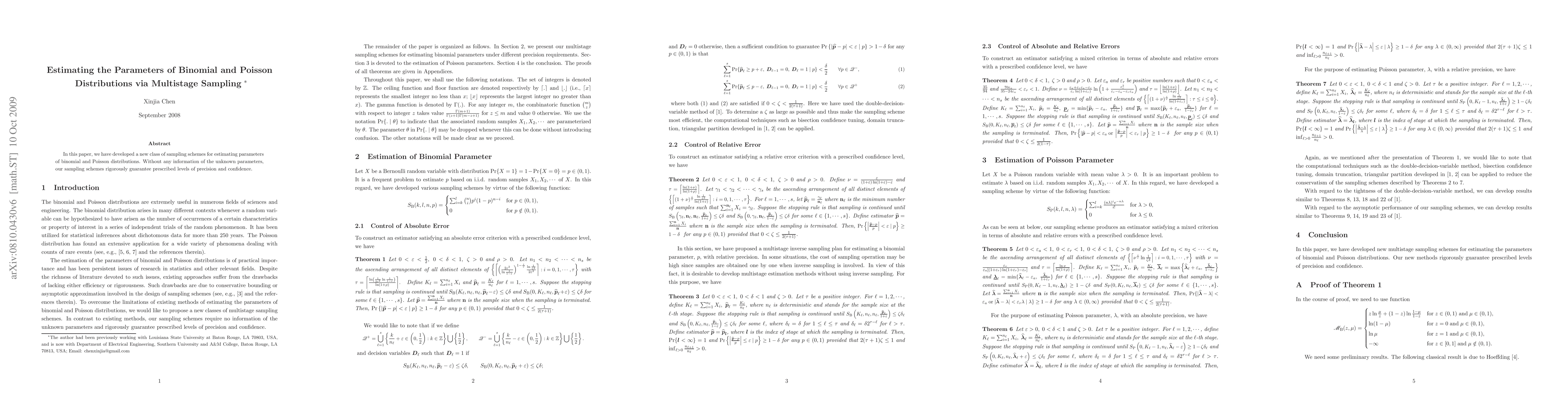 Researchers developed a new method for estimating parameters of binomial and Poisson distributions using multistage sampling, ensuring precise results without prior knowledge of the unknown parameters.