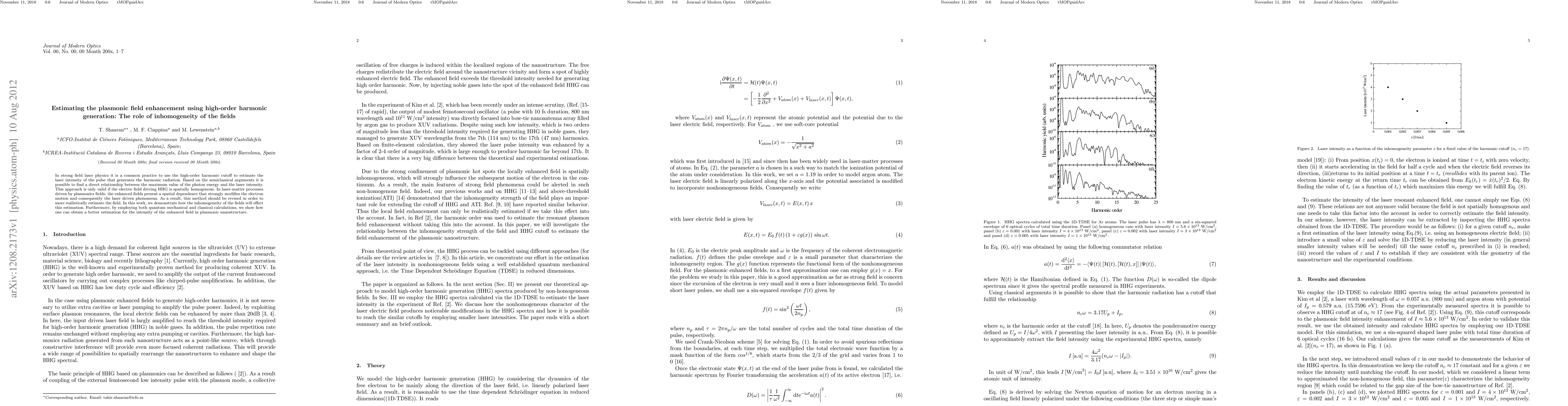 In strong field laser physics it is a common practice to use the high-order harmonic cutoff to estimate the laser intensity of the pulse that generates the harmonic radiation. Based on the semiclassical arguments it is possible to find a direct relationship between the maximum value of the photon energy and the laser intensity. This approach is only valid if the electric field driving HHG is spatially homogenous. In laser-matter processes driven by plasmonics fields, the enhanced fields present a spatial dependence that strongly modifies the electron motion and consequently the laser driven phenomena. As a result, this method should be revised in order to more realistically estimate the field. In this work, we demonstrate how the inhomogeneity of the fields will effect this estimation. Furthermore, by employing both quantum mechanical and classical calculations, we show how one can obtain a better estimation for the intensity of the enhanced field in plasmonic nanostructure.