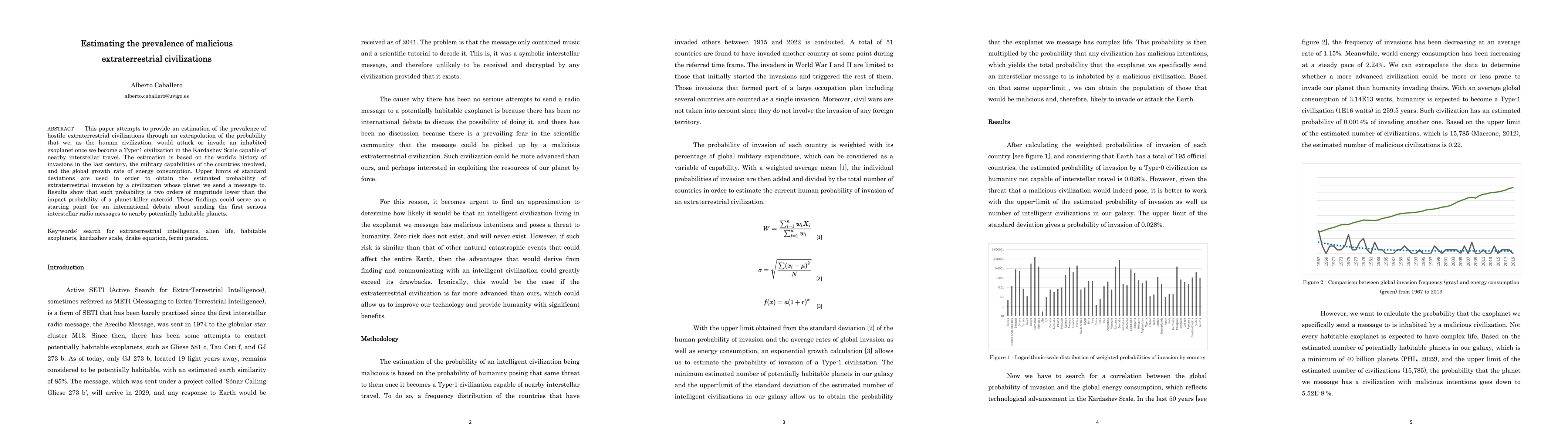 This paper estimates the likelihood of hostile extraterrestrial civilizations through an extrapolation of human invasion tendencies, finding it two orders of magnitude lower than the risk from asteroid impacts. The study suggests this could initiate discussions on sending interstellar radio messages to potentially habitable planets.