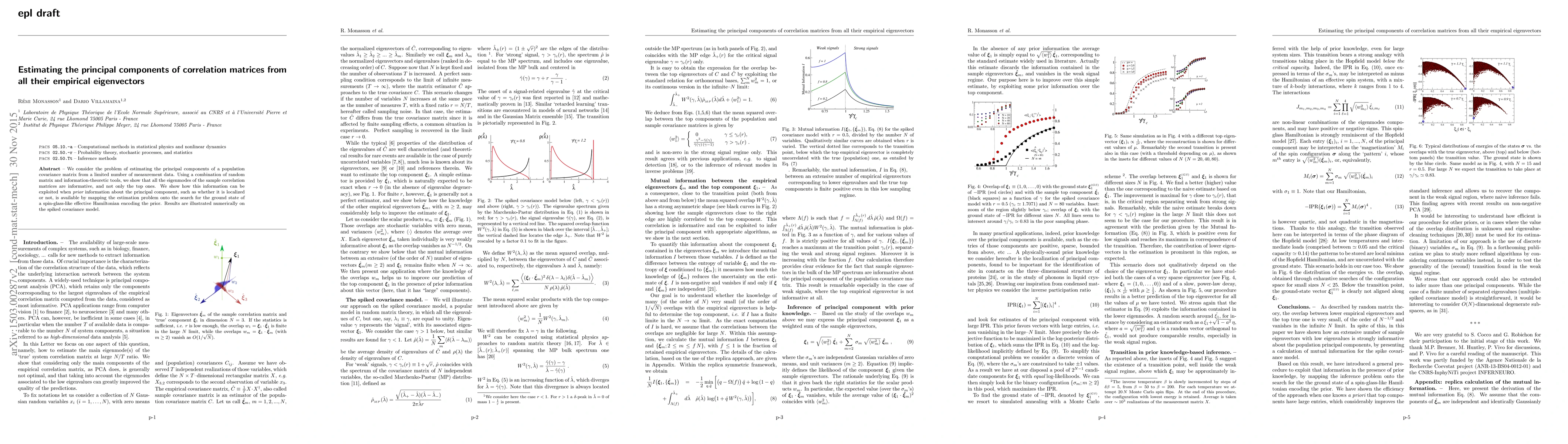 This paper proposes a method to estimate the principal components of a population correlation matrix using all empirical eigenvectors, not just the top ones, leveraging random matrix and information-theoretic tools. It demonstrates how prior information about the principal components can guide the estimation process by mapping it onto the search for the ground state of an effective Hamiltonian.