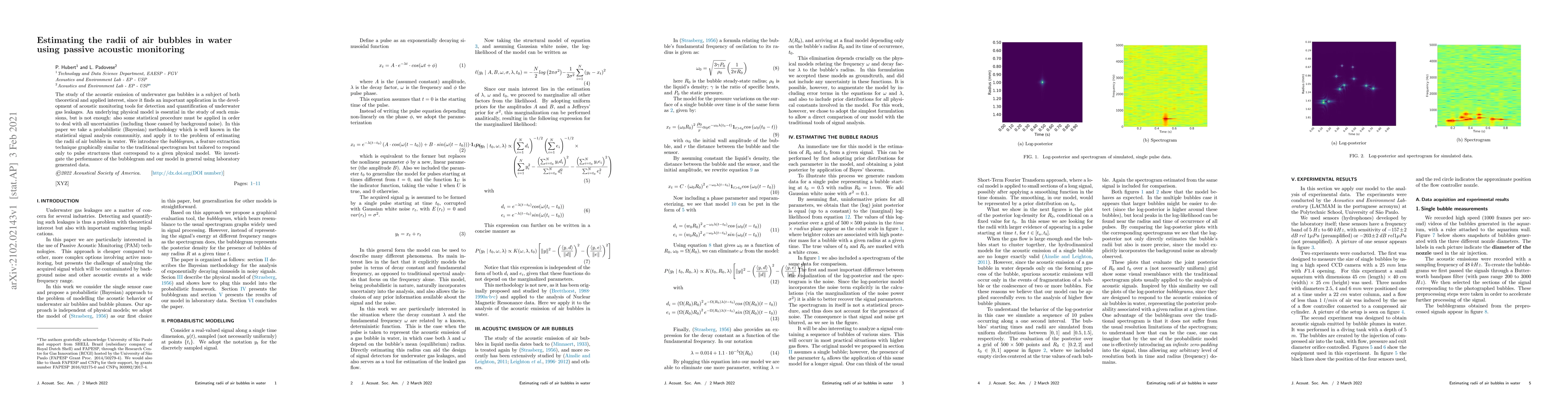 The study of the acoustic emission of underwater gas bubbles is a subject of both theoretical and applied interest, since it finds an important application in the development of acoustic monitoring tools for detection and quantification of underwater gas leakages. An underlying physical model is essential in the study of such emissions, but is not enough: also some statistical procedure must be applied in order to deal with all uncertainties (including those caused by background noise). In this paper we take a probabilistic (Bayesian) methodology which is well known in the statistical signal analysis communitiy, and apply it to the problem of estimating the radii of air bubbles in water. We introduce the bubblegram, a feature extraction technique graphically similar to the traditional spectrogram but tailored to respond only to pulse structures that correspond to a given physical model. We investigate the performance of the bubblegram and our model in general using laboratory generated data.