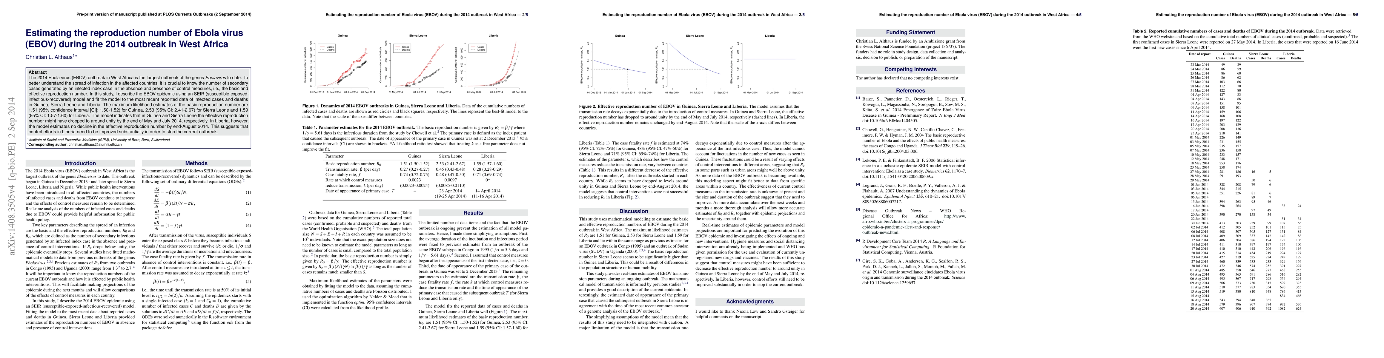 This study estimates the basic reproduction number for the 2014 Ebola outbreak in West Africa, finding it to be around 1.5-2.5, with significant variation between Guinea, Sierra Leone, and Liberia. Control measures appear to have reduced the effective reproduction number to near unity in Guinea and Sierra Leone by mid-2014, but not in Liberia, indicating the need for enhanced control efforts there.