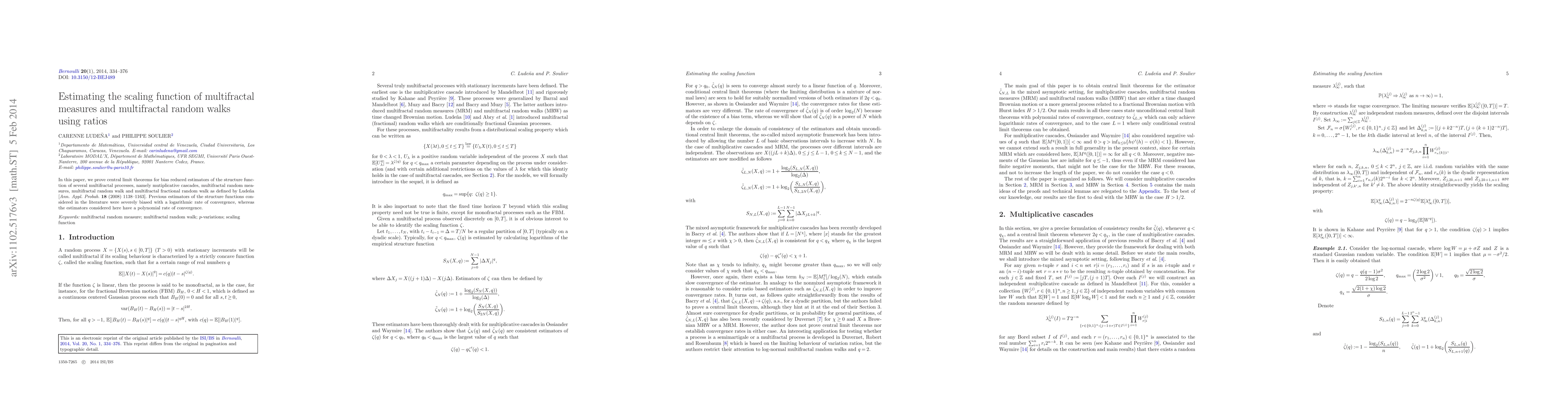 In this paper, we prove central limit theorems for bias reduced estimators of the structure function of several multifractal processes, namely mutiplicative cascades, multifractal random measures, multifractal random walk and multifractal fractional random walk as defined by Lude\~{n}a [Ann. Appl. Probab. 18 (2008) 1138-1163]. Previous estimators of the structure functions considered in the literature were severely biased with a logarithmic rate of convergence, whereas the estimators considered here have a polynomial rate of convergence.