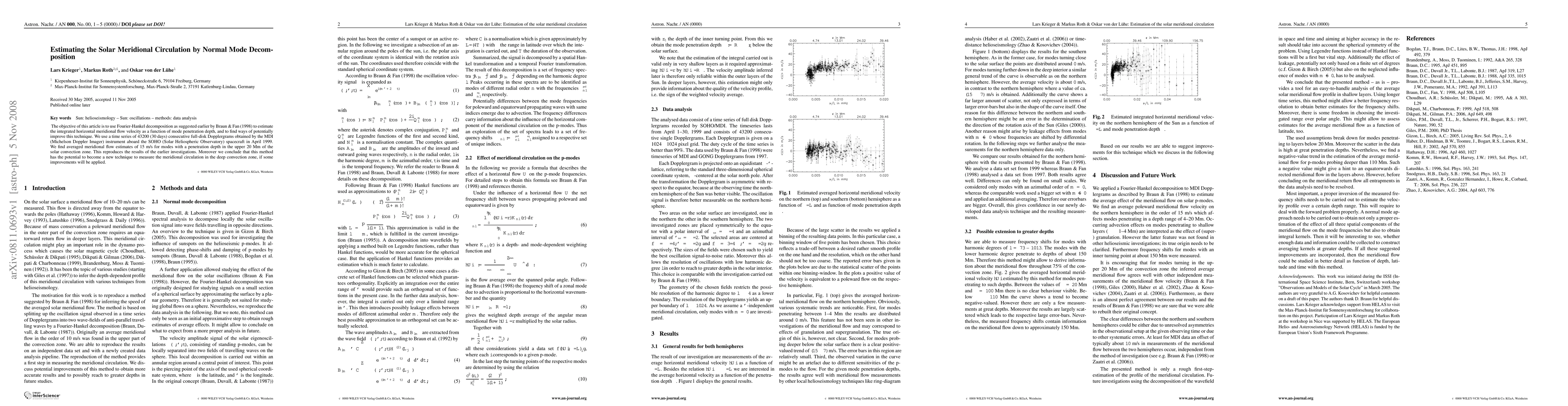 This paper estimates the solar meridional circulation using Fourier-Hankel decomposition on MDI data from SOHO, finding an average flow of 15 m/s for modes with shallow penetration. The technique shows promise for measuring deep convection zone circulation with further enhancements.