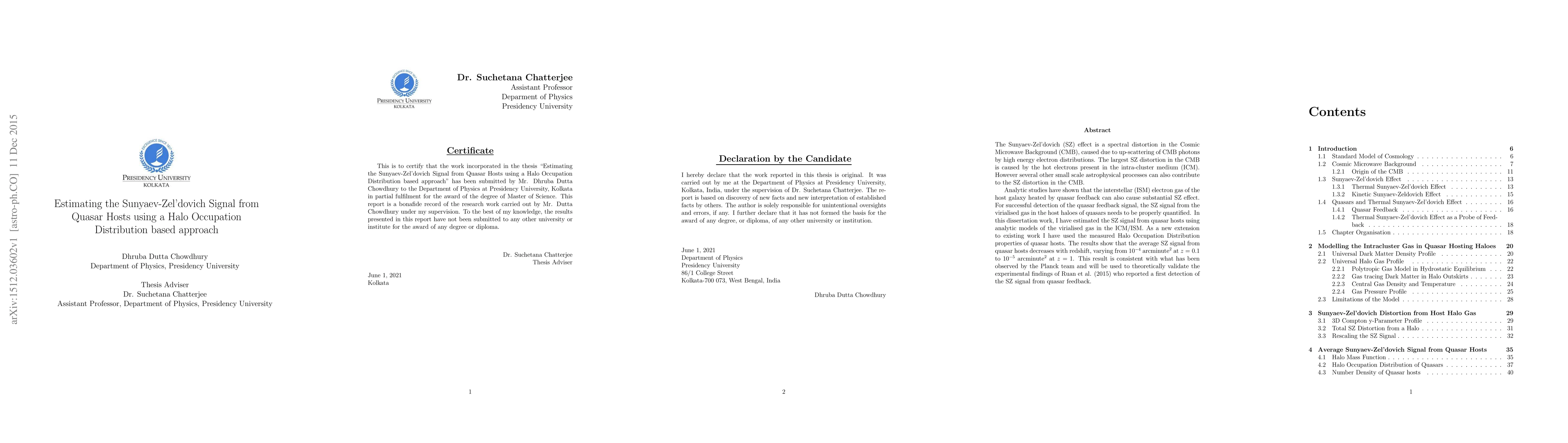 The Sunyaev-Zeldovich (SZ) effect is a spectral distortion in the Cosmic Microwave Background (CMB), caused due to up-scattering of CMB photons by high energy electron distributions. The largest SZ distortion in the CMB is caused by the hot electrons present in the intra-cluster medium (ICM). However, several other small scale astrophysical processes can also contribute to the SZ distortion in the CMB. Analytic studies have shown that the interstellar (ISM) electron gas of the host galaxy heated by quasar feedback can also cause substantial SZ effect. For successful detection of the quasar feedback signal, the SZ signal from the virialized gas in the host halos of quasars needs to be properly quantified. In this dissertation work, I have estimated the SZ signal from quasar hosts using analytic models of the virialized gas in the ICM/ISM. As a new extension to existing work I have used the measured Halo Occupation Distribution properties of quasar hosts. The results show that the average SZ signal from quasar hosts decreases with redshift. This result is consist what what has been observed by the Planck team. I have compared by calculations with the experimental results of Ruan et al. (2015). While Ruan et al. (2015) claim their detection to be from quasar feedback, I find that within the errors of my model, their detection can be explained with halo signal alone, without introducing feedback.
