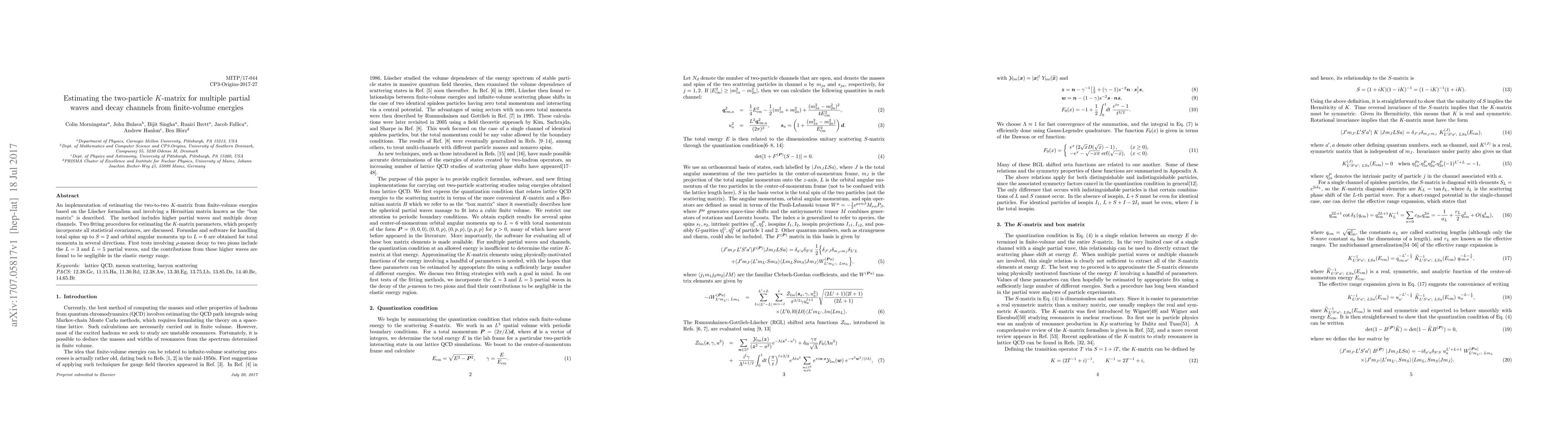 This paper presents a method for estimating the two-to-two $K$-matrix from finite-volume energies using the Lüscher formalism, which includes higher partial waves and multiple decay channels. The approach utilizes a Hermitian "box matrix" and provides fitting procedures for $K$-matrix parameters, with initial tests on $\rho$-meson decay showing negligible contributions from higher partial waves.