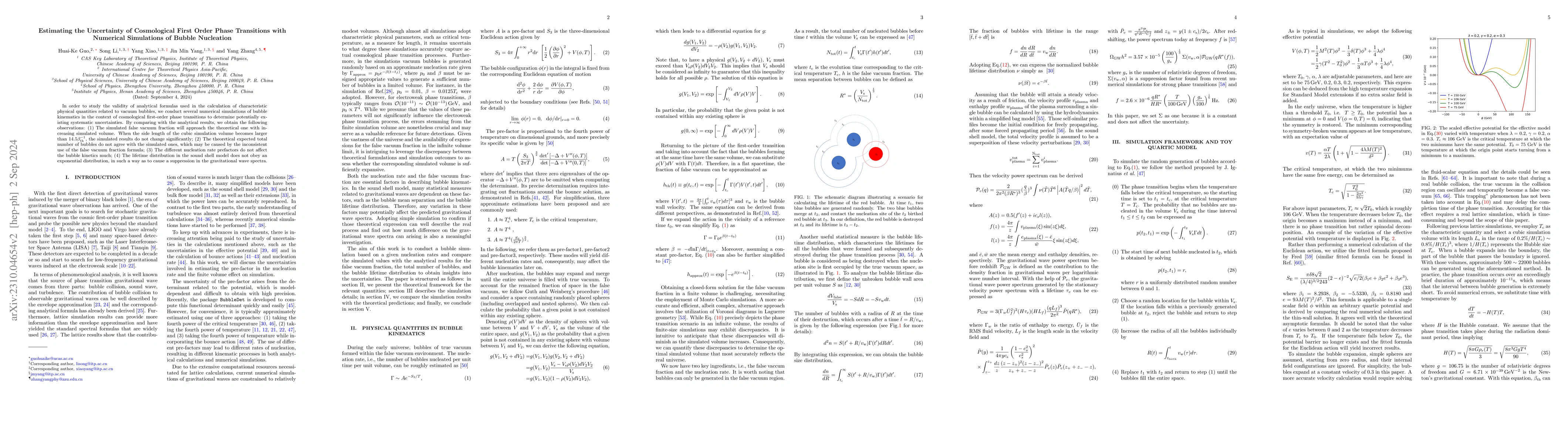 This paper investigates the uncertainties in cosmological first-order phase transitions through numerical simulations, finding discrepancies between simulated and analytical results for bubble number and lifetime distribution, which impact the gravitational wave spectra. The simulations show a 10% discrepancy in bubble count and deviations in the bubble lifetime distribution, affecting the resulting gravitational wave peak values.