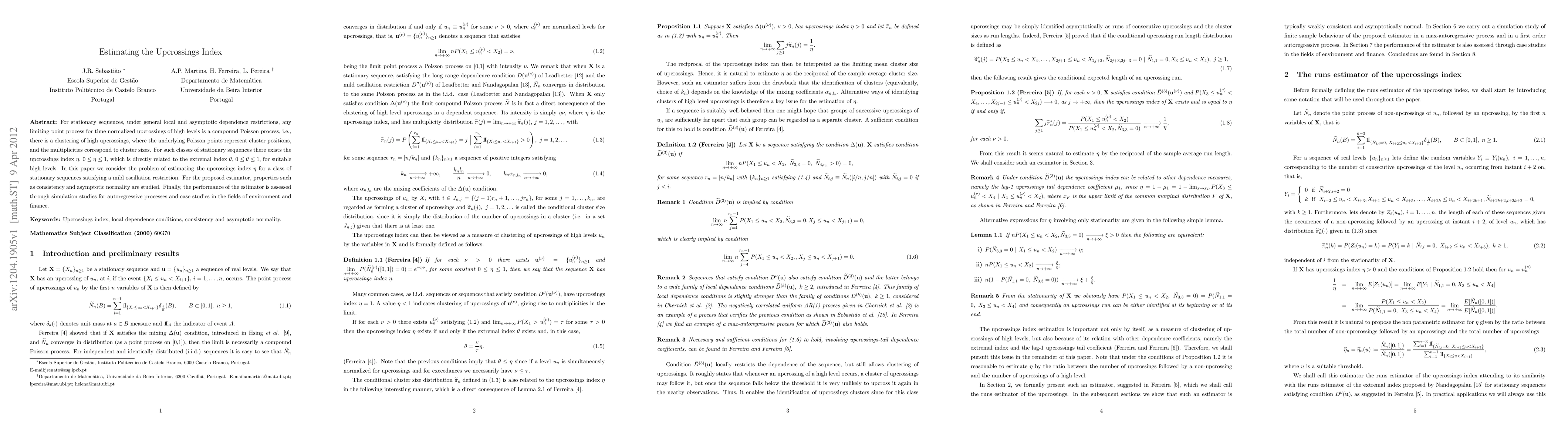 This paper proposes an estimator for the upcrossings index $\eta$ in stationary sequences, demonstrating its consistency and asymptotic normality. Simulation studies evaluate its performance for autoregressive processes and applications in environment and finance.