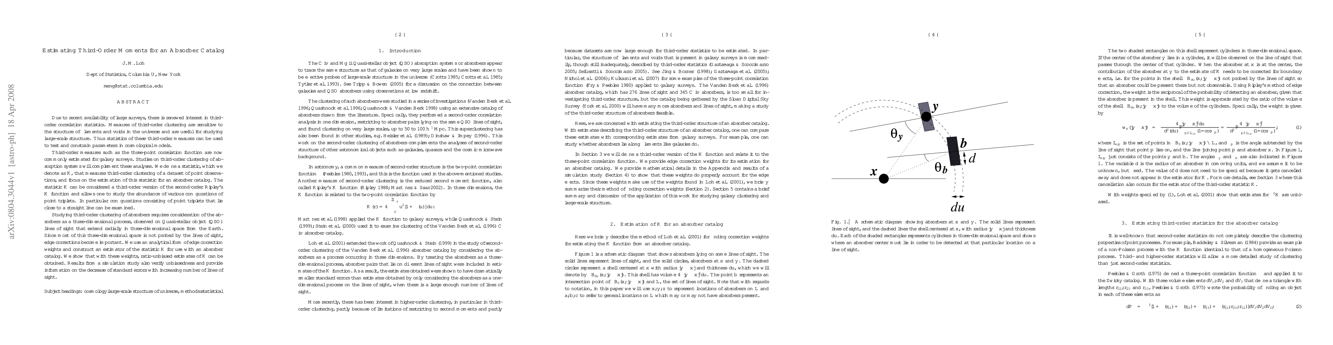 Thanks to the recent availability of large surveys, there has been renewed interest in third-order correlation statistics. Measures of third-order clustering are sensitive to the structure of filaments and voids in the universe and are useful for studying large-scale structure. Thus, statistics of these third-order measures can be used to test and constrain parameters in cosmological models. Third-order measures such as the three-point correlation function are now commonly estimated for galaxy surveys. Studies of third-order clustering of absorption systems will complement these analyses. We define a statistic, which we denote K, that measures third-order clustering of a data set of point observations and focus on estimating this statistic for an absorber catalog. The statistic K can be considered a third-order version of the second-order Ripley K-function and allows one to study the abundance of various configurations of point triplets. In particular, configurations consisting of point triplets that lie close to a straight line can be examined. Studying third-order clustering of absorbers requires consideration of the absorbers as a three-dimensional process, observed on QSO lines of sight that extend radially in three-dimensional space from Earth. Since most of this three-dimensional space is not probed by the lines of sight, edge corrections become important. We use an analytical form of edge correction weights and construct an estimator of the statistic K for use with an absorber catalog. We show that with these weights, ratio-unbiased estimates of K can be obtained. Results from a simulation study also verify unbiasedness and provide information on the decrease of standard errors with increasing number of lines of sight.
