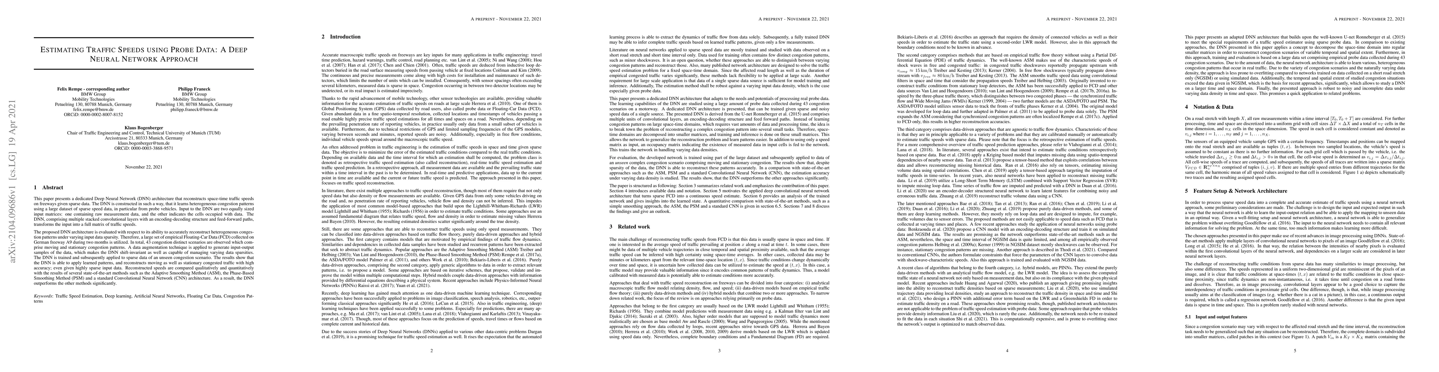This research introduces a Deep Neural Network (DNN) that accurately reconstructs traffic speeds from sparse probe vehicle data, outperforming traditional methods. The DNN, trained on German freeway A9's Floating-Car Data, demonstrates high reconstruction accuracy for both moving and stationary congestion, even with sparse inputs.
