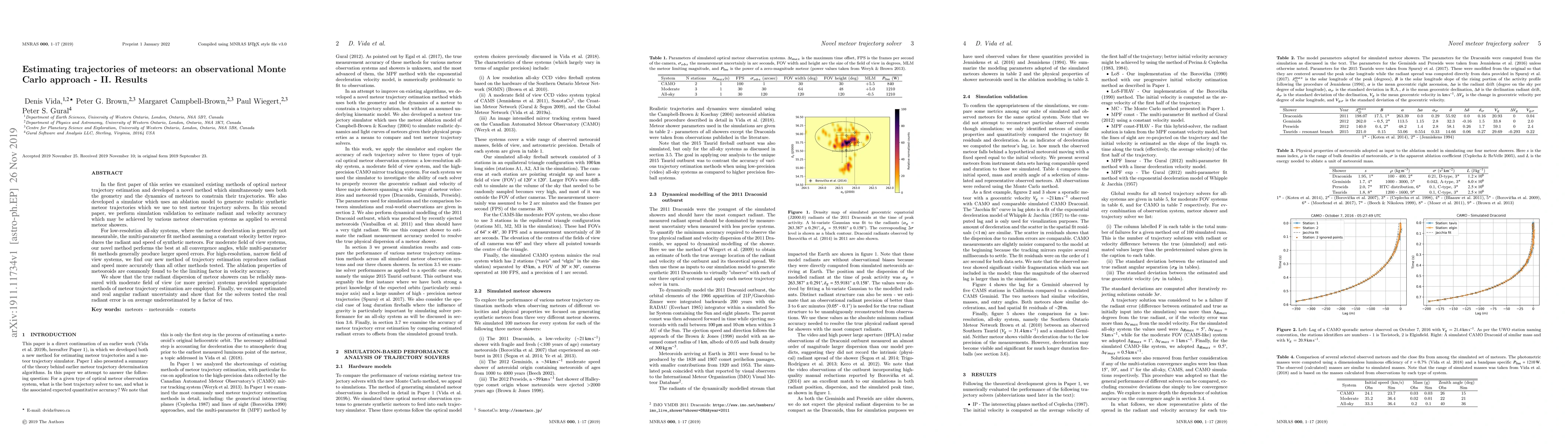 In the first paper of this series we examined existing methods of optical meteor trajectory estimation and developed a novel method which simultaneously uses both the geometry and the dynamics of meteors to constrain their trajectories. We also developed a simulator which uses an ablation model to generate realistic synthetic meteor trajectories which we use to test meteor trajectory solvers. In this second paper, we perform simulation validation to estimate radiant and velocity accuracy which may be achieved by various meteor observation systems as applied to several meteor showers. For low-resolution all-sky systems, where the meteor deceleration is generally not measurable, the multi-parameter fit method assuming a constant velocity better reproduces the radiant and speed of synthetic meteors. For moderate field of view systems, our novel method performs the best at all convergence angles, while multi-parameter fit methods generally produce larger speed errors. For high-resolution, narrow field of view systems, we find our new method of trajectory estimation reproduces radiant and speed more accurately than all other methods tested. The ablation properties of meteoroids are commonly found to be the limiting factor in velocity accuracy. We show that the true radiant dispersion of meteor showers can be reliably measured with moderate field of view (or more precise) systems provided appropriate methods of meteor trajectory estimation are employed. Finally, we compare estimated and real angular radiant uncertainty and show that for the solvers tested the real radiant error is on average underestimated by a factor of two.