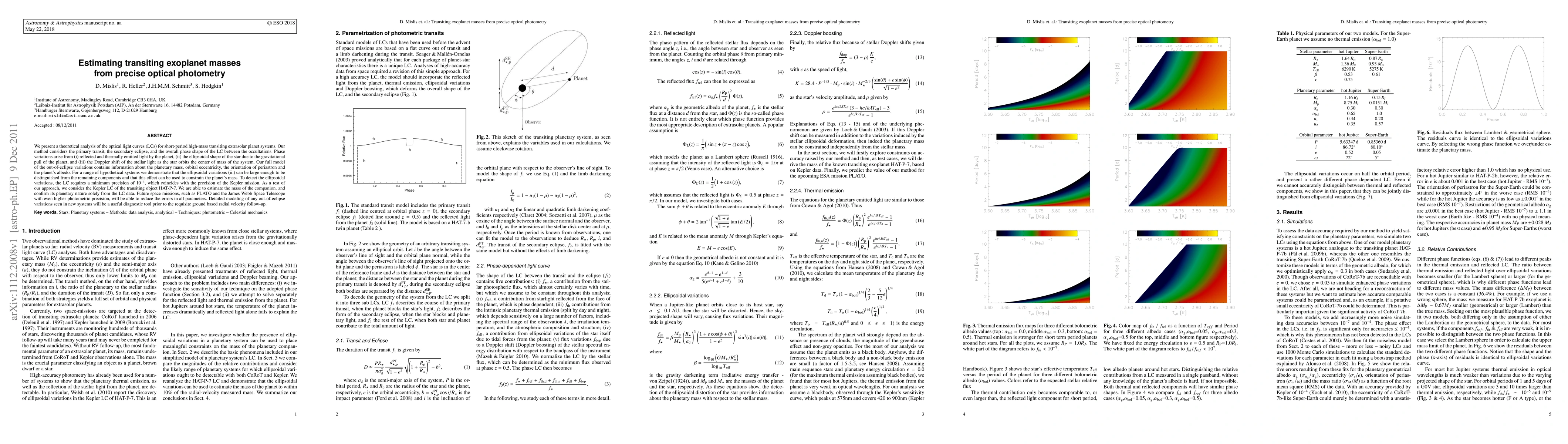 Researchers develop a method to estimate exoplanet masses from precise optical photometry, enabling accurate detection of planetary systems with high-mass transiting planets.