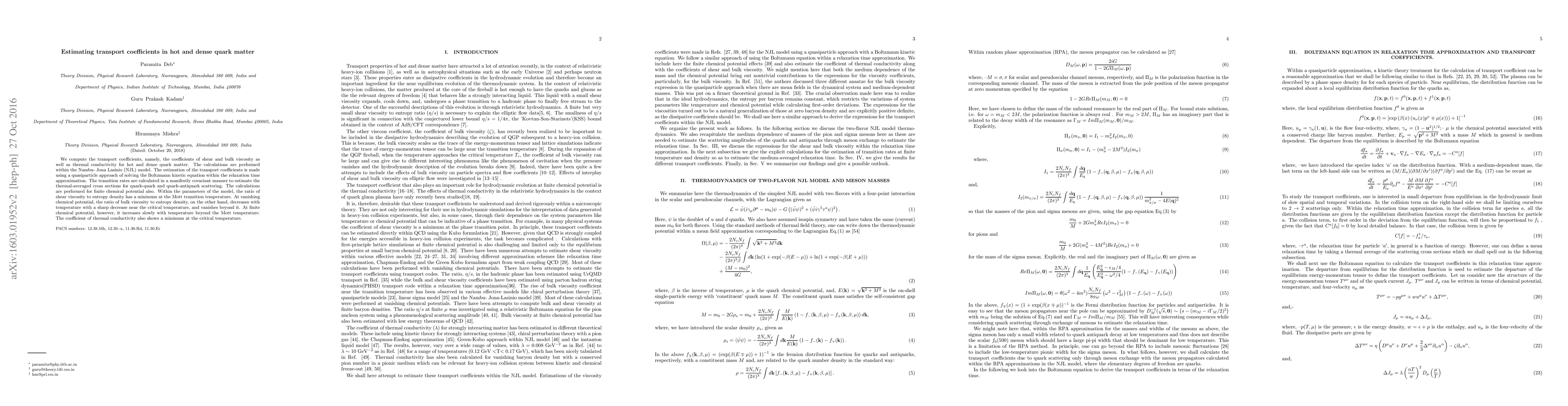 This paper estimates transport coefficients—shear viscosity, bulk viscosity, and thermal conductivity—for hot and dense quark matter using the Nambu-Jona Lasinio model and a quasiparticle approach. The study reveals that the ratio of shear viscosity to entropy density has a minimum at the Mott transition temperature, while the ratio of bulk viscosity to entropy density decreases sharply near the critical temperature and vanishes beyond it, with different behavior at finite chemical potential.