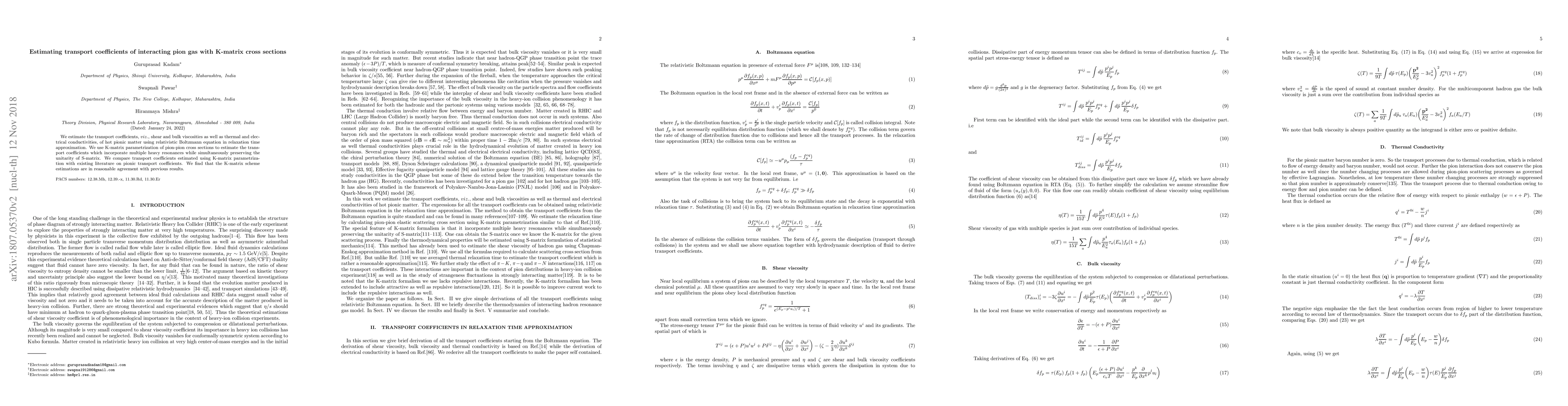 This paper estimates the transport coefficients of an interacting pion gas using the relativistic Boltzmann equation and K-matrix parametrization for pion-pion cross sections. The results show reasonable agreement with existing literature on pionic transport coefficients.