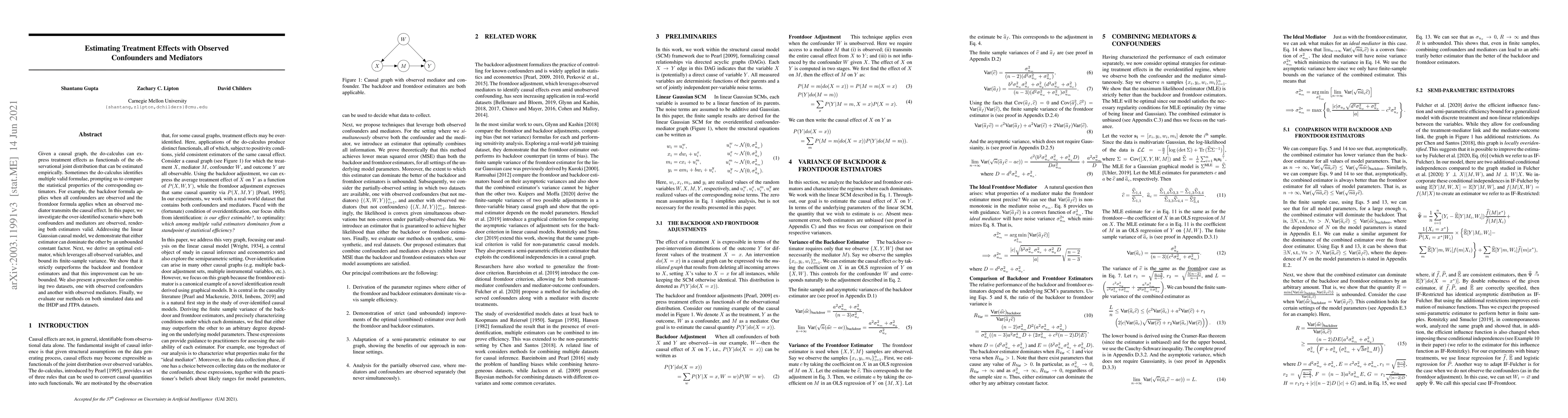 Given a causal graph, the do-calculus can express treatment effects as functionals of the observational joint distribution that can be estimated empirically. Sometimes the do-calculus identifies multiple valid formulae, prompting us to compare the statistical properties of the corresponding estimators. For example, the backdoor formula applies when all confounders are observed and the frontdoor formula applies when an observed mediator transmits the causal effect. In this paper, we investigate the over-identified scenario where both confounders and mediators are observed, rendering both estimators valid. Addressing the linear Gaussian causal model, we demonstrate that either estimator can dominate the other by an unbounded constant factor. Next, we derive an optimal estimator, which leverages all observed variables, and bound its finite-sample variance. We show that it strictly outperforms the backdoor and frontdoor estimators and that this improvement can be unbounded. We also present a procedure for combining two datasets, one with observed confounders and another with observed mediators. Finally, we evaluate our methods on both simulated data and the IHDP and JTPA datasets.
