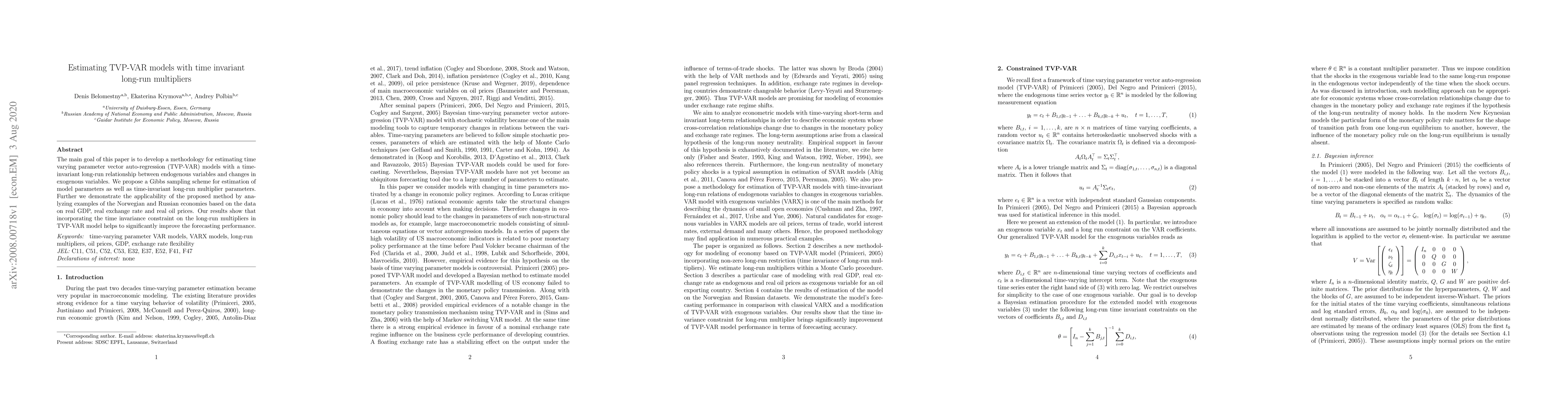 This paper develops a methodology for estimating TVP-VAR models with time-invariant long-run multipliers using a Gibbs sampling scheme, demonstrating improved forecasting performance through analysis of the Norwegian and Russian economies.