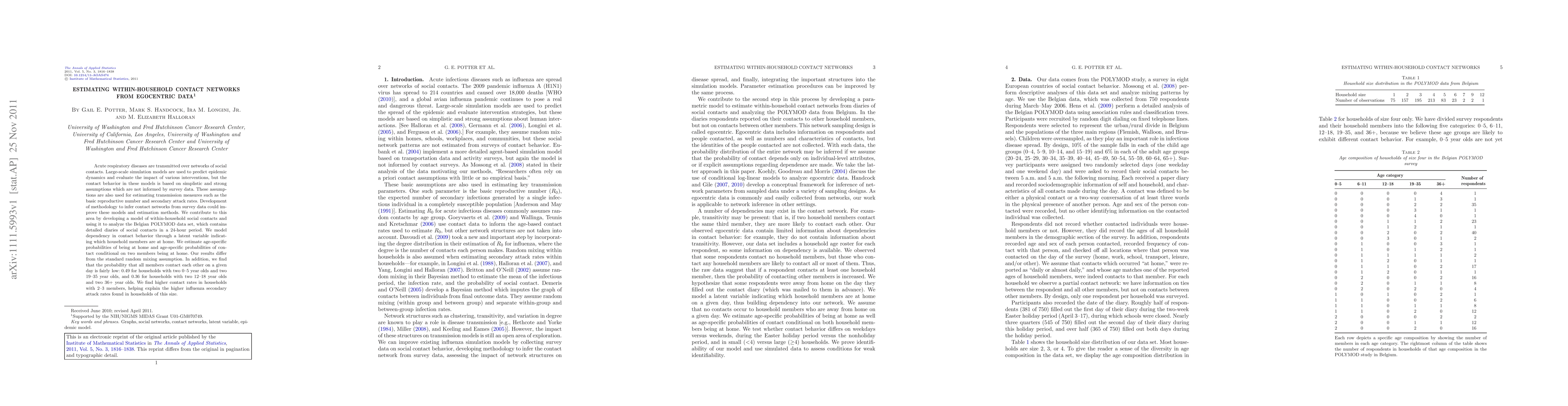 Researchers developed a model to analyze within-household contact networks from egocentric data, finding that households with 2-3 members have higher contact rates and that contact probabilities vary significantly by age group.