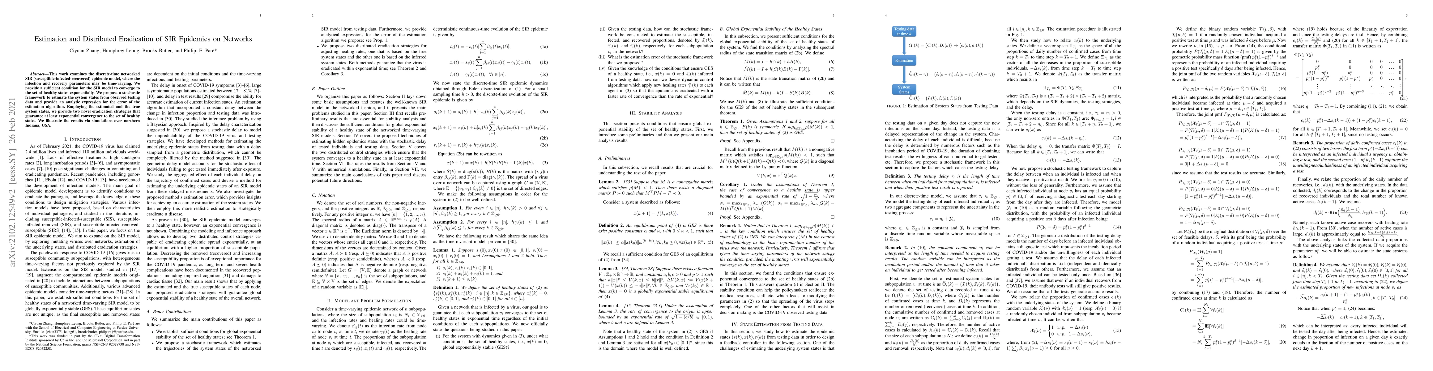 Researchers developed a framework to estimate SIR epidemic models and proposed two eradication strategies that guarantee exponential convergence to healthy states. Their work aims to help control the spread of infectious diseases in networks.