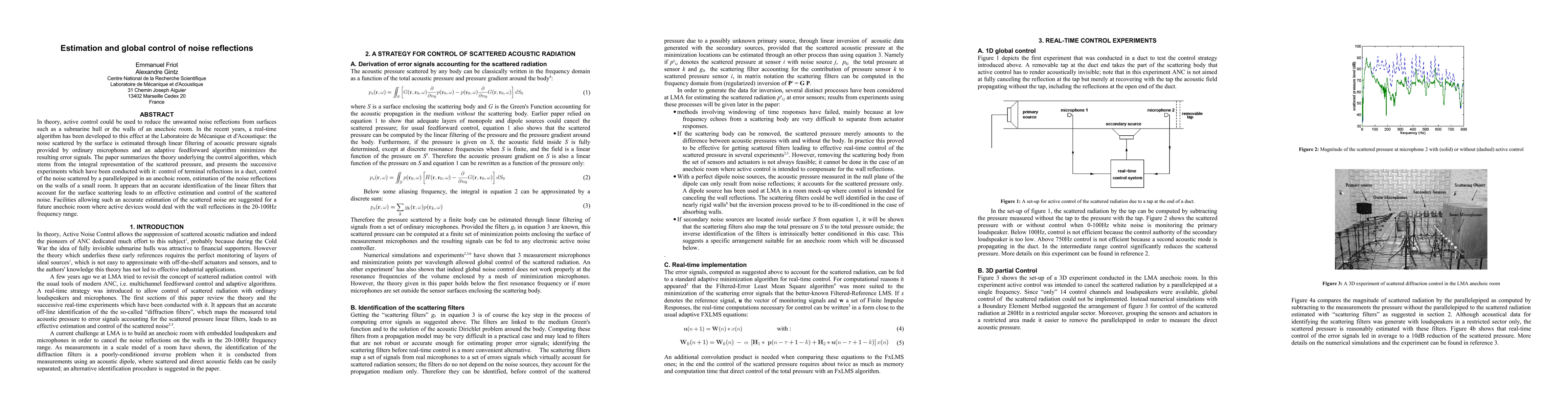 This paper details an active control algorithm developed to reduce noise reflections using real-time linear filtering and adaptive feedforward techniques. The algorithm effectively estimates and controls noise reflections in various environments, suggesting future applications in anechoic rooms for active noise management.