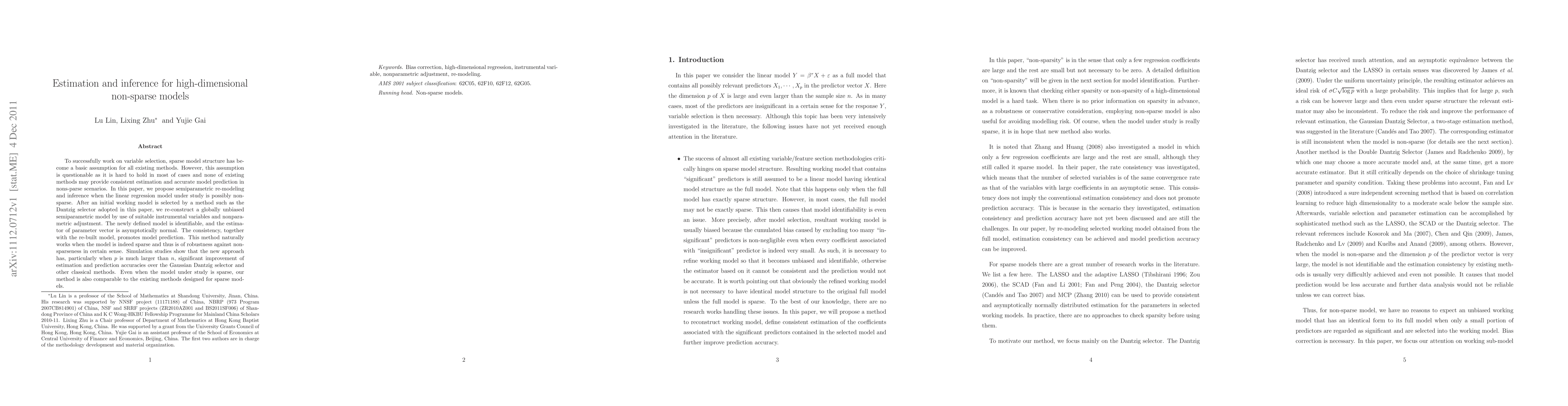 To successfully work on variable selection, sparse model structure has become a basic assumption for all existing methods. However, this assumption is questionable as it is hard to hold in most of cases and none of existing methods may provide consistent estimation and accurate model prediction in nons-parse scenarios. In this paper, we propose semiparametric re-modeling and inference when the linear regression model under study is possibly non-sparse. After an initial working model is selected by a method such as the Dantzig selector adopted in this paper, we re-construct a globally unbiased semiparametric model by use of suitable instrumental variables and nonparametric adjustment. The newly defined model is identifiable, and the estimator of parameter vector is asymptotically normal. The consistency, together with the re-built model, promotes model prediction. This method naturally works when the model is indeed sparse and thus is of robustness against non-sparseness in certain sense. Simulation studies show that the new approach has, particularly when $p$ is much larger than $n$, significant improvement of estimation and prediction accuracies over the Gaussian Dantzig selector and other classical methods. Even when the model under study is sparse, our method is also comparable to the existing methods designed for sparse models.