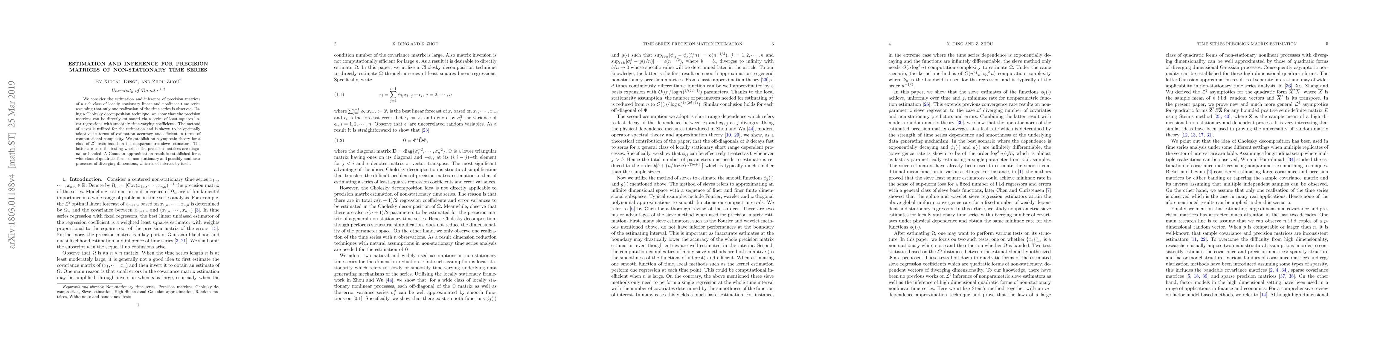 This paper develops a method for estimating and inferring precision matrices of non-stationary time series using a Cholesky decomposition and sieves technique. The proposed method is shown to be efficient and adaptive, with an established asymptotic theory for ${\cal L}^2$ tests to determine if the precision matrices are diagonal or banded.
