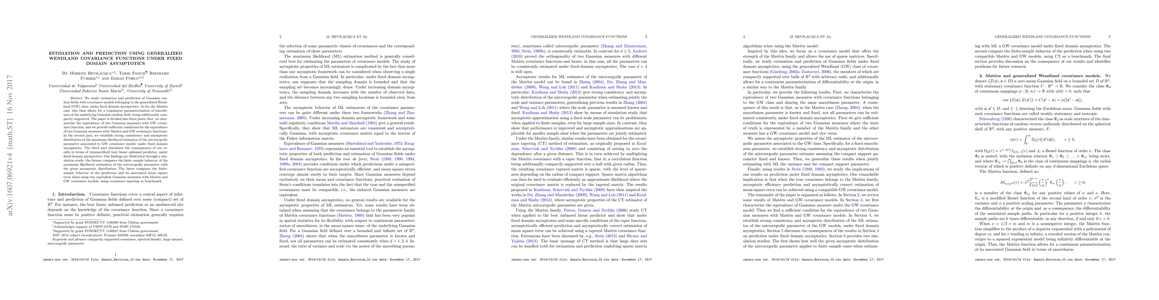 We study estimation and prediction of Gaussian random fields with covariance models belonging to the generalized Wendland (GW) class, under fixed domain asymptotics. As the Mat\'ern case, this class allows a continuous parameterization of smoothness of the underlying Gaussian random field, being additionally compactly supported. The paper is divided into two parts: First, we characterize the equivalence of two Gaussian measures with GW covariance function, and we provide sufficient conditions for the equivalence of two Gaussian measures with Mat\'ern and GW covariance functions. We elucidate the consequences of these facts in terms of (misspecified) best linear unbiased predictors. In the second part, we establish strong consistency and asymptotic distribution of the maximum likelihood estimator of the microergodic parameter associated to GW covariance model, under fixed domain asymptotics. Our findings are illustrated through a simulation study: The first compares the finite sample behavior of the maximum likelihood estimation of the microergodic parameter with the given asymptotic distribution. We then compare the finite-sample behavior of the prediction and its associated mean square error when using two equivalent Gaussian measures with Mat\'ern and GW covariance model, using covariance tapering as benchmark.