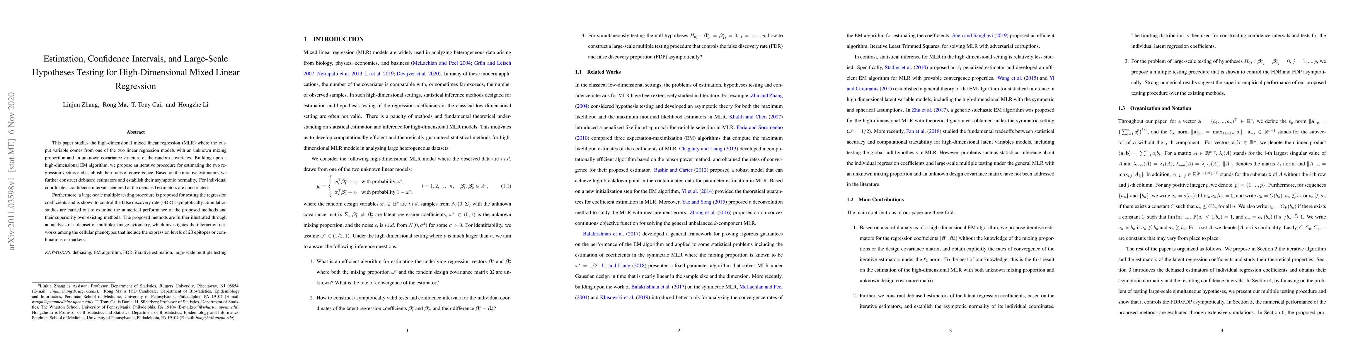 Development of a novel algorithm for high-dimensional mixed linear regression analysis that provides accurate and efficient estimates of model parameters.