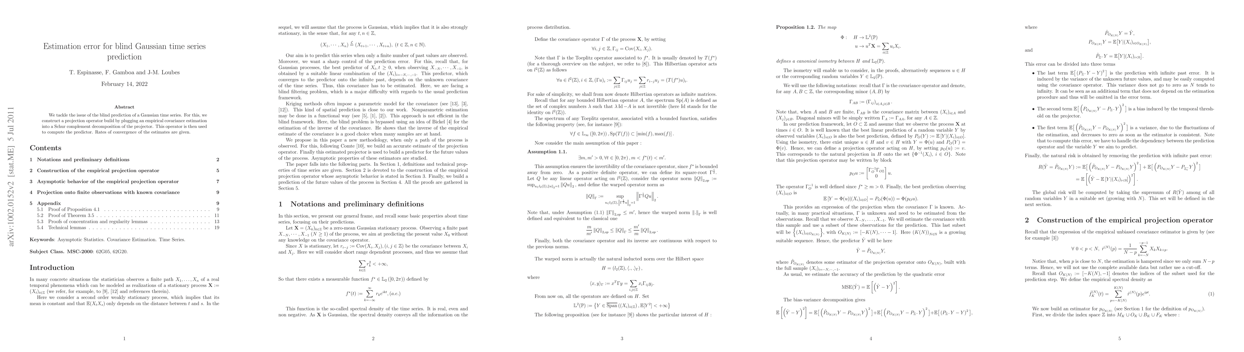 This paper develops a projection operator for blind prediction of Gaussian time series by integrating empirical covariance estimation into a Schur complement decomposition. It provides convergence rates for the proposed predictor.