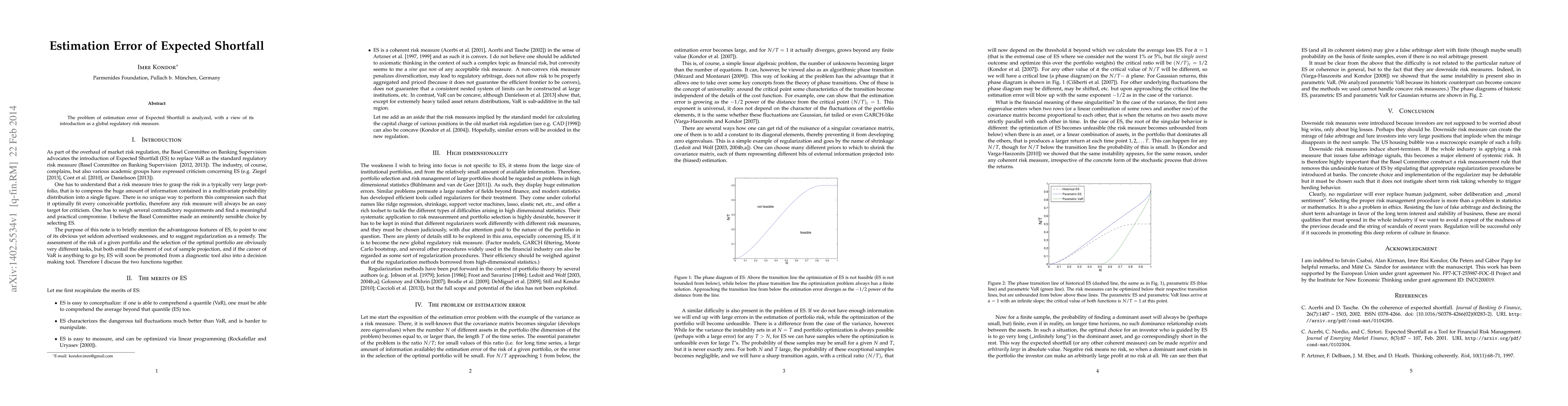 Summary: This paper examines the estimation error associated with Expected Shortfall, a key regulatory risk measure, and discusses its implications for global financial risk management. The analysis aims to improve the accuracy and reliability of this measure in regulatory frameworks.