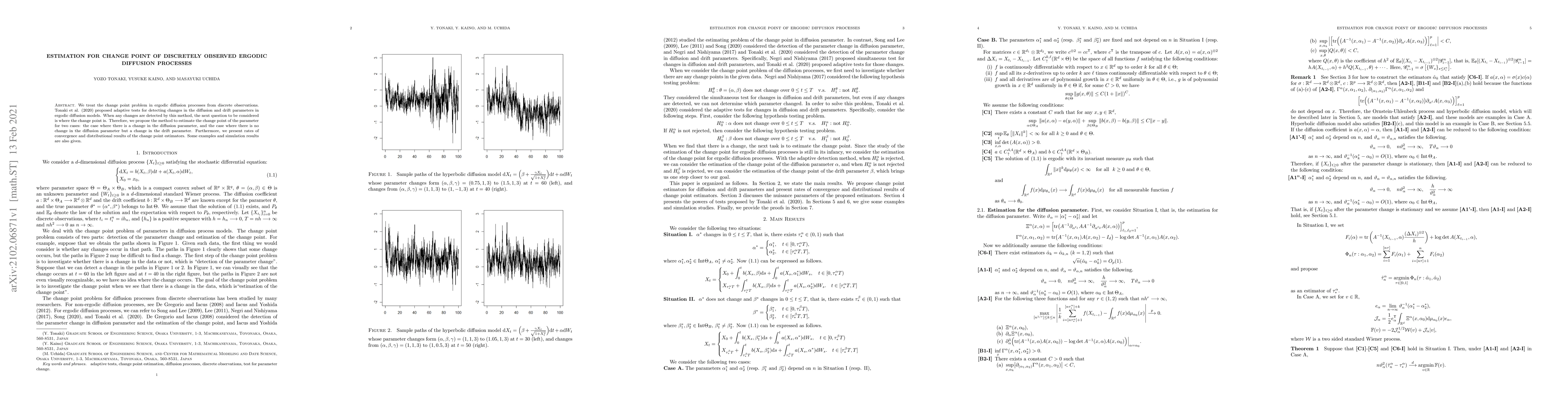 This paper proposes methods to estimate change points in discretely observed ergodic diffusion processes, addressing scenarios where changes occur in either the diffusion or drift parameters. It also provides convergence rates and distributional results for the estimators, along with examples and simulation results to validate the approach.