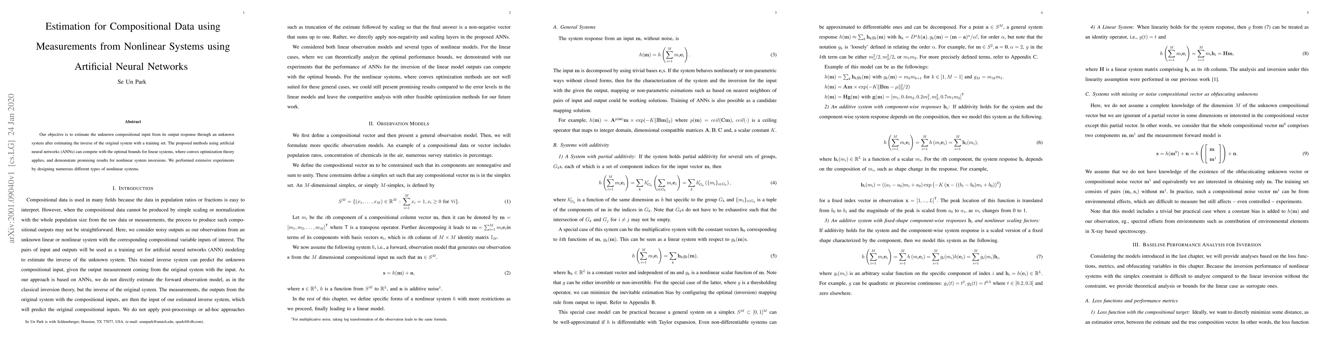 This paper proposes using artificial neural networks (ANNs) to estimate compositional inputs from nonlinear system outputs, achieving competitive results compared to optimal bounds for linear systems and showing promise for nonlinear inversions. Extensive experiments with various nonlinear systems validate the effectiveness of the proposed method.