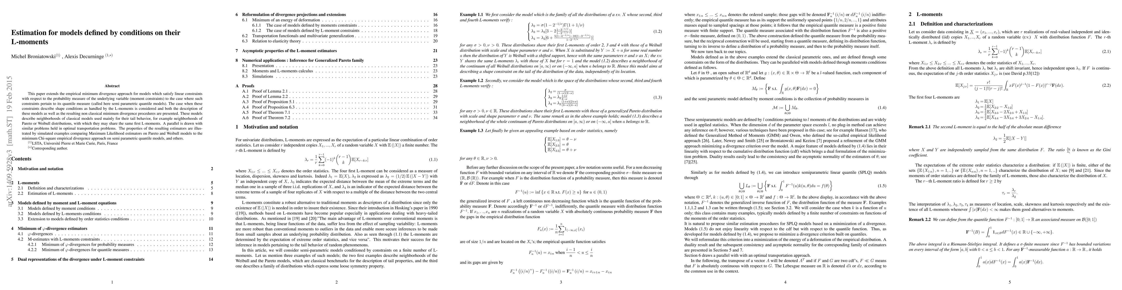 This paper extends the empirical minimum divergence approach for models which satisfy linear constraints with respect to the probability measure of the underlying variable (moment constraints) to the case where such constraints pertain to its quantile measure (called here semi parametric quantile models). The case when these constraints describe shape conditions as handled by the L-moments is considered and both the description of these models as well as the resulting non classical minimum divergence procedures are presented. These models describe neighborhoods of classical models used mainly for their tail behavior, for example neighborhoods of Pareto or Weibull distributions, with which they may share the same first L-moments. A parallel is drawn with similar problems held in elasticity theory and in optimal transport problems. The properties of the resulting estimators are illustrated by simulated examples comparing Maximum Likelihood estimators on Pareto and Weibull models to the minimum Chi-square empirical divergence approach on semi parametric quantile models, and others.