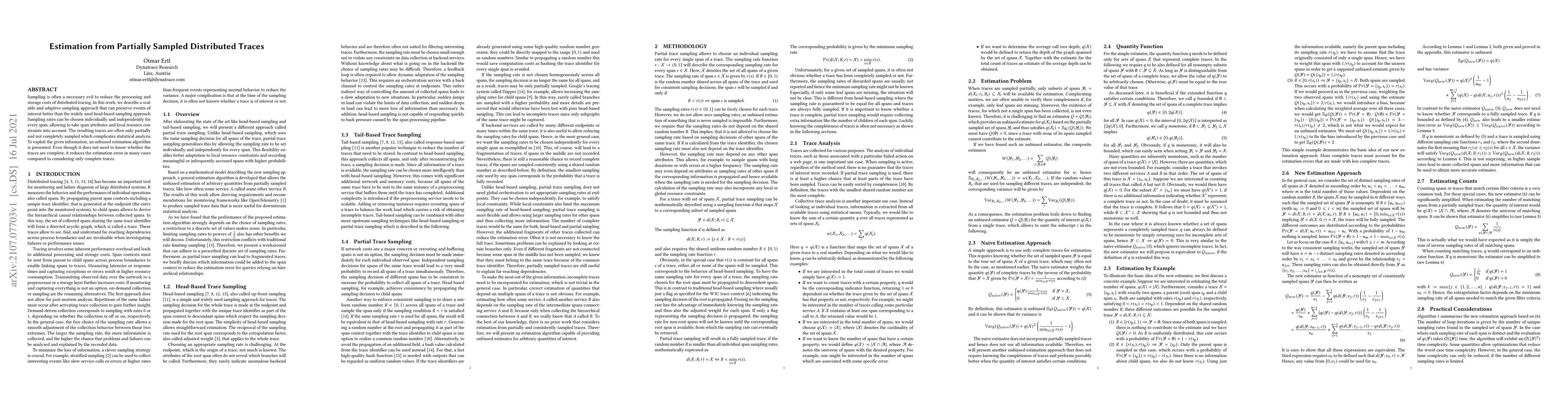 A new sampling approach for distributed tracing preserves more events of interest than existing methods, allowing for improved estimation even with partially sampled traces.